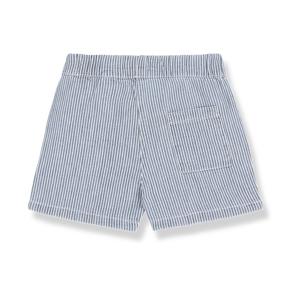 Deze gestreepte short van 1+ in the family is een comfortabele en tijdloze korte broek voor baby’s. De fijne verticale strepen in wit en blauw geven de short een frisse, zomerse uitstraling. De zachte katoenen stof voelt prettig aan op de huid en biedt volop bewegingsvrijheid tijdens het spelen. De elastische tailleband met decoratief knoopje zorgt voor een fijne pasvorm, terwijl de opgestikte zakken een subtiel speels detail toevoegen. Een veelzijdige korte broek die mooi combineert met een t-shirt, top of licht truitje.