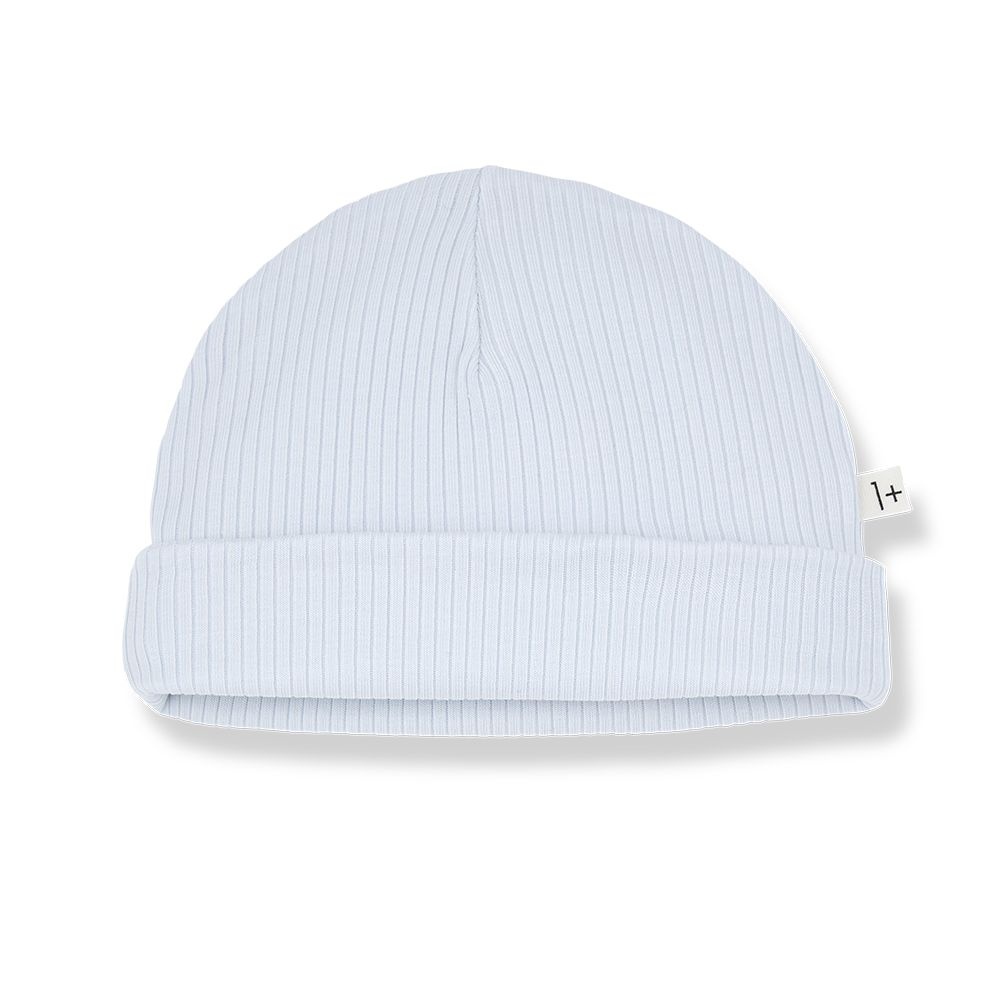 Deze baby muts van 1+ in the family in de kleur Misty Blue is een fijne basic voor de eerste maanden. De muts is gemaakt van een zachte stof die comfortabel aansluit zonder te strak te zitten. Dankzij de omslagrand blijft het hoofdje goed warm en zit de pasvorm netjes op z’n plek. De lichte blauw tint Misty Blue geeft het mutsje een rustige, tijdloze uitstraling die makkelijk te combineren is.