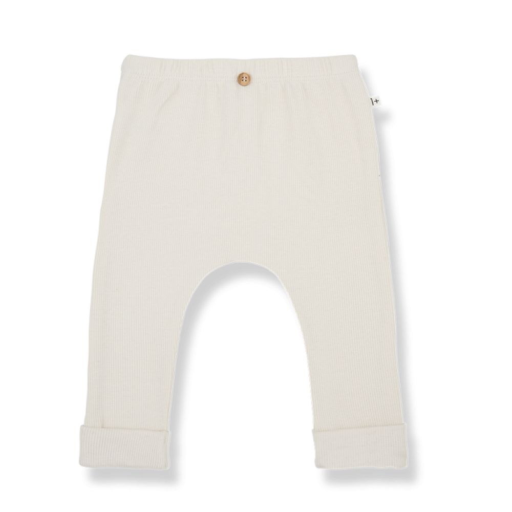 Deze comfortabele broek van One More in the Family is gemaakt van een zachte mix van 98% katoen en 2% elastaan, wat zorgt voor een lichte stretch en aangename pasvorm. Het minimalistische ontwerp, uitgevoerd in een neutrale tint, maakt het een veelzijdig kledingstuk dat gemakkelijk te combineren is. De elastische tailleband met een decoratief knoopje en de omgeslagen broekspijpen geven een subtiel speels detail. Ideaal voor dagelijks gebruik, biedt deze broek zowel comfort als stijl voor je newborn baby.