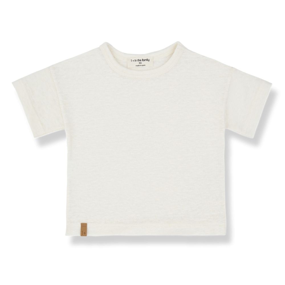 Dit unisex T-shirt van One More in the Family is gemaakt van een comfortabele mix van 95% linnen en 5% elastaan, wat zorgt voor een lichte, ademende pasvorm met een subtiele stretch. Het minimalistische ontwerp in een neutrale basic kleur maakt het veelzijdig en gemakkelijk te combineren met verschillende outfits. Ideaal voor warme dagen, biedt deze top een perfecte balans tussen stijl en comfort voor je baby.