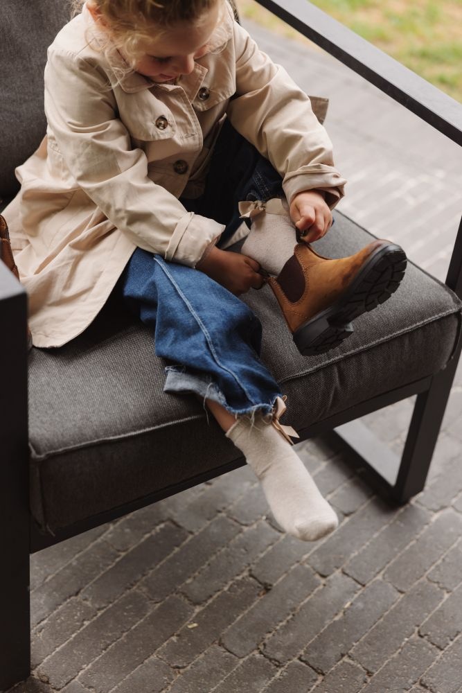 Modieus, onverwoestbaar en een goede ondersteuning. Deze enkellaarsjes met een elastiek aan de zijkant zijn de bekende chelsea boots van het Australische merk Blundstone. Door de lusjes aan zowel de voor- als achterzijde, zijn de laarzen gemakkelijk aan en uit te trekken. Hierdoor zijn de boots al geschikt vanaf een jonge leeftijd. De boots zijn gemaakt van stevige materialen en geschikt voor ieder seizoen van het jaar. Tijdens een wandeling, een uitje met school of avonturen in het bos, zijn deze boots de gehele dag comfortabel en stevig. Combineer ze met een stoere spijkerbroek of juist onder een jurk, jij kiest! Een must-have voor iedere schoenencollectie.