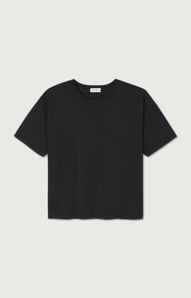 Dit zwarte t-shirt van American Vintage is een tijdloze basic die in elke garderobe past. Het model heeft een relaxte pasvorm en een ronde hals, waardoor het eenvoudig te combineren is met zowel casual als meer geklede outfits. Gemaakt van 100% katoen voelt de stof zacht en ademend aan, perfect voor dagelijks gebruik. De minimalistische uitstraling maakt dit shirt veelzijdig: draag het met een jeans voor een klassieke look of style het onder een blazer voor een moderne, gelaagde outfit.