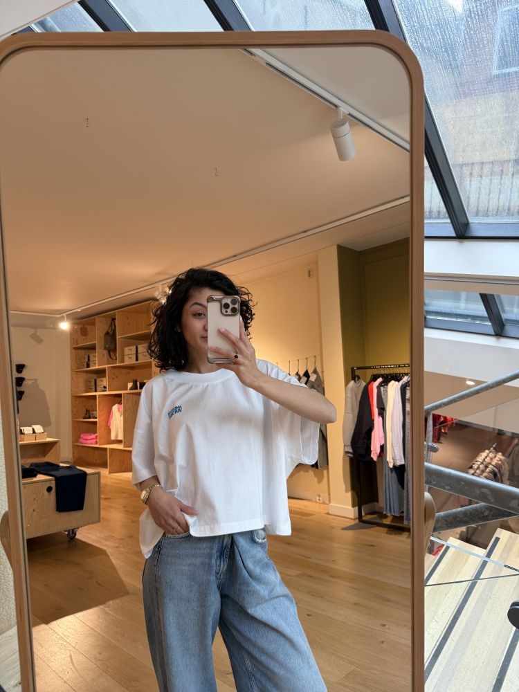 Dit witte t-shirt van American Vintage heeft een frisse, minimalistische uitstraling en is prettig om te dragen. De top met korte mouwen is gemaakt van een zachte, soepel aanvoelende stof en heeft een iets ruimere vorm voor een ontspannen look. Op de borst staat een klein American Vintage logo in een frisse blauwe tint, wat zorgt voor een subtiel maar herkenbaar accent. De heldere witte kleur maakt dit tshirt makkelijk te combineren met een broek, short of rok. Een tijdloze basic top met korte mouwen in de kenmerkende stijl van American Vintage.