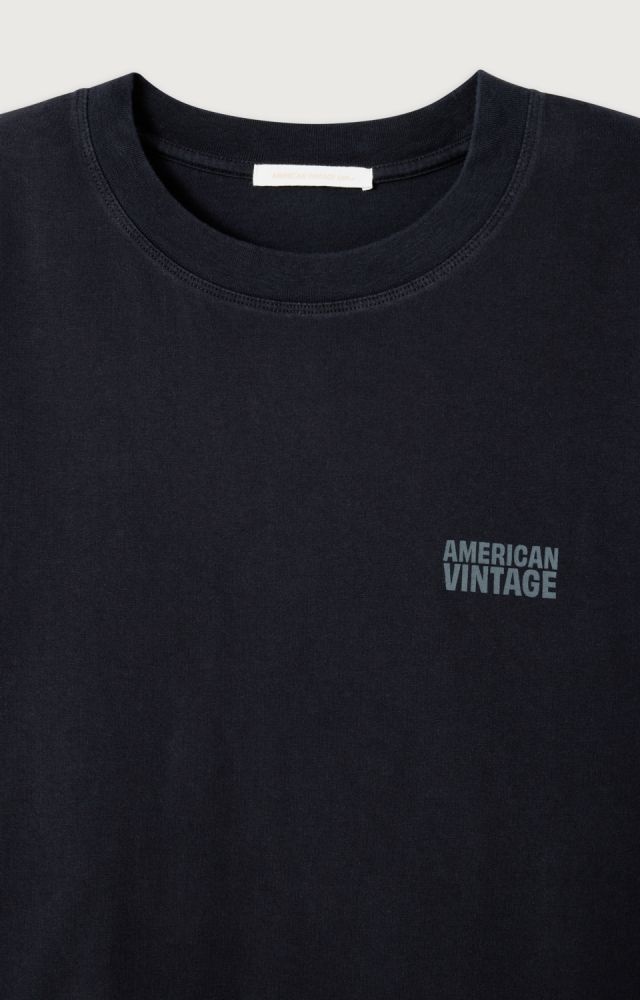 Deze zwarte longsleeve top van American Vintage heeft een krachtige, minimalistische uitstraling en draagt comfortabel. De top met lange mouwen is gemaakt van een zachte, soepel aanvoelende stof en voelt prettig aan op de huid. Op de borst staat een subtiel American Vintage logo in grijs, wat zorgt voor een rustig en verfijnd detail. De losse vorm geeft deze longsleeve een ontspannen look en maakt combineren met een broek, short of onder een sweater eenvoudig. Een tijdloze basic top met lange mouwen in de herkenbare stijl van American Vintage.
