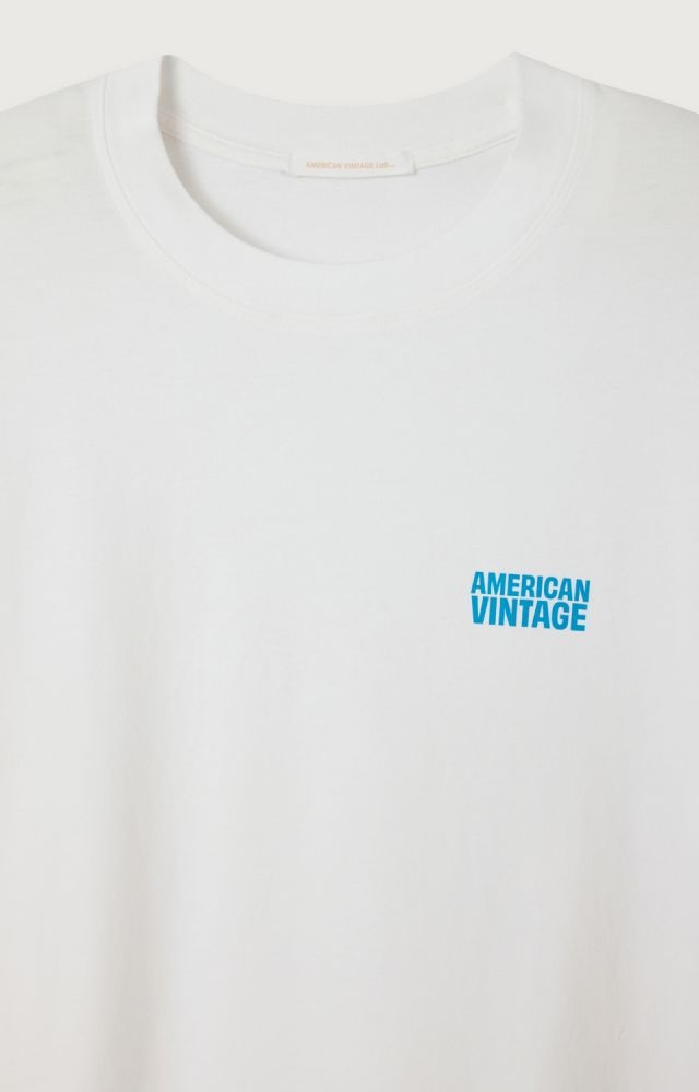 Deze witte longsleeve top van American Vintage heeft een frisse, tijdloze uitstraling en is fijn om elke dag te dragen. De top met lange mouwen is gemaakt van een zachte, soepel aanvoelende stof en draagt comfortabel op de huid. Op de borst staat een klein American Vintage logo in een heldere blauwe tint, wat zorgt voor een subtiel en herkenbaar detail. De losse vorm geeft deze longsleeve een ontspannen look en maakt combineren met een broek, short of onder een sweater of spencer eenvoudig. Een veelzijdige basic top met lange mouwen in de kenmerkende stijl van American Vintage.