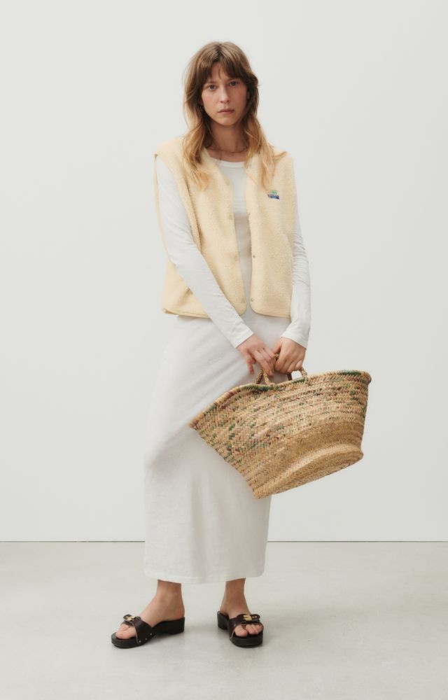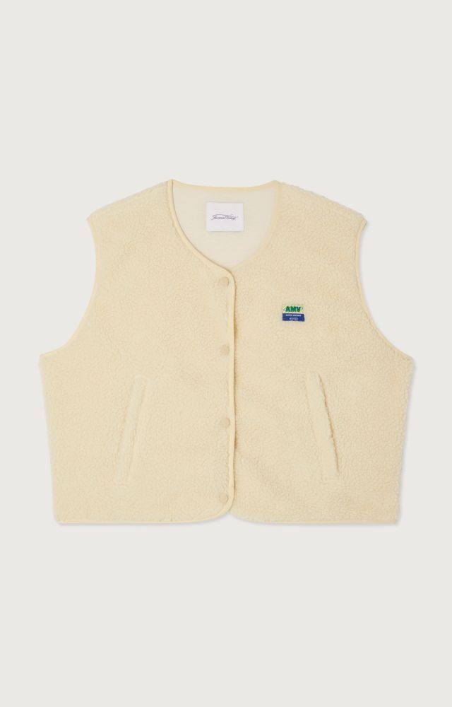 Gilet van American Vintage druk knopen aan de voorzijde. Met dit creme kleurige jasje maak jij jouw outfit helemaal compleet. Leuk voor over een t-shirt, sweater of jurk. De bodywarmer is gemaakt van 100% polyester.