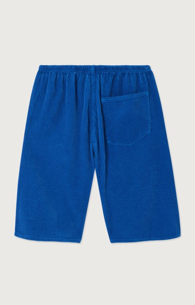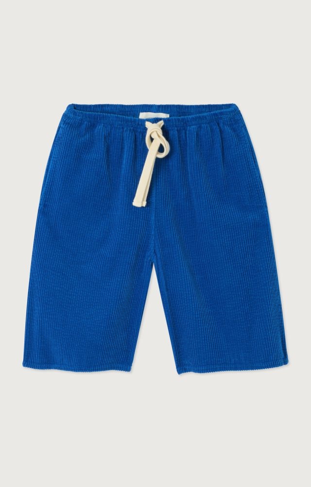 Deze blauwe korte broek van American Vintage heeft een comfortabele en relaxte uitstraling. De short is gemaakt van een zachte ribstof en voelt prettig aan tijdens het dragen. Dankzij de elastische tailleband met strikkoord zit deze korte broek fijn en beweegt hij makkelijk mee. De pijpen vallen tot rond de knie, wat zorgt voor een nonchalante, eigentijdse look. De diepe blauwe kleur geeft deze short een frisse uitstraling en laat zich makkelijk combineren met een t-shirt, top of sweater. Ook leuk te combineren met de bijpassende top. Een fijne korte broek met het ontspannen karakter van American Vintage.