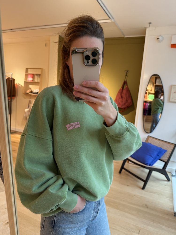 De Plizzy sweater van American Vintage in Citronelle Vintage is zo’n item dat je er steeds weer bij pakt. Deze dames trui in een frisse groen tint heeft een relaxte, losvallende pasvorm met en een ronde hals. Het subtiele American Vintage logo op de borst geeft de trui een herkenbare en sportieve uitstraling.