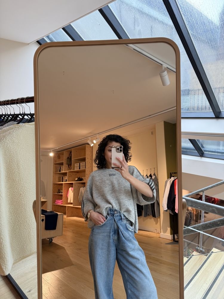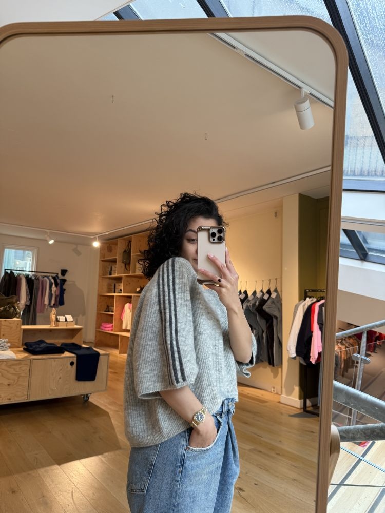 Combineer ’m met denim, een wijde broek of juist een rok voor een sportieve look.