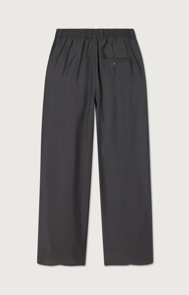 Deze antraciete broek van American Vintage heeft een rustige, tijdloze uitstraling en draagt comfortabel. De broek is gemaakt van een soepele, lichtgewicht stof en heeft een elastische tailleband met knoopsluiting, wat zorgt voor een prettige pasvorm. De rechte pijpen geven de broek een ontspannen look en laten zich makkelijk combineren met een t-shirt, blouse of sweater. Ook leuk te combineren met de bijpassende blouse uit de collectie. De diepe antraciet tint maakt deze broek veelzijdig en geschikt voor zowel casual als iets gekledere outfits. Een fijne broek met het minimalistische karakter dat past bij American Vintage.