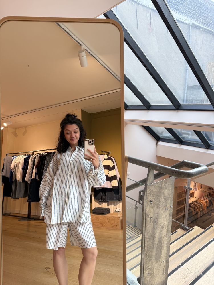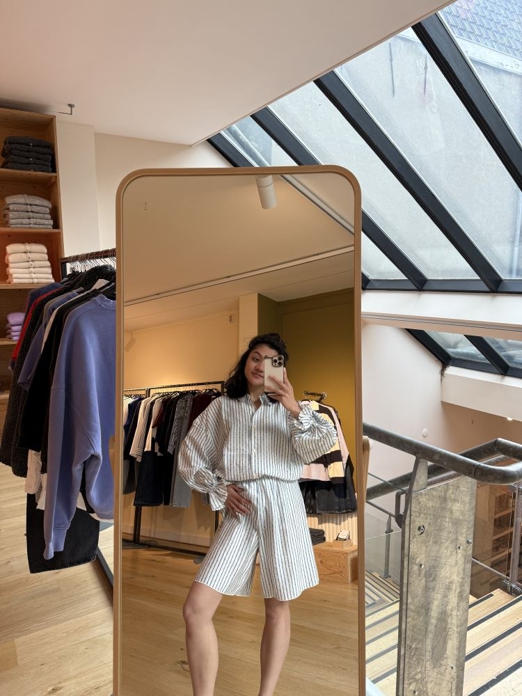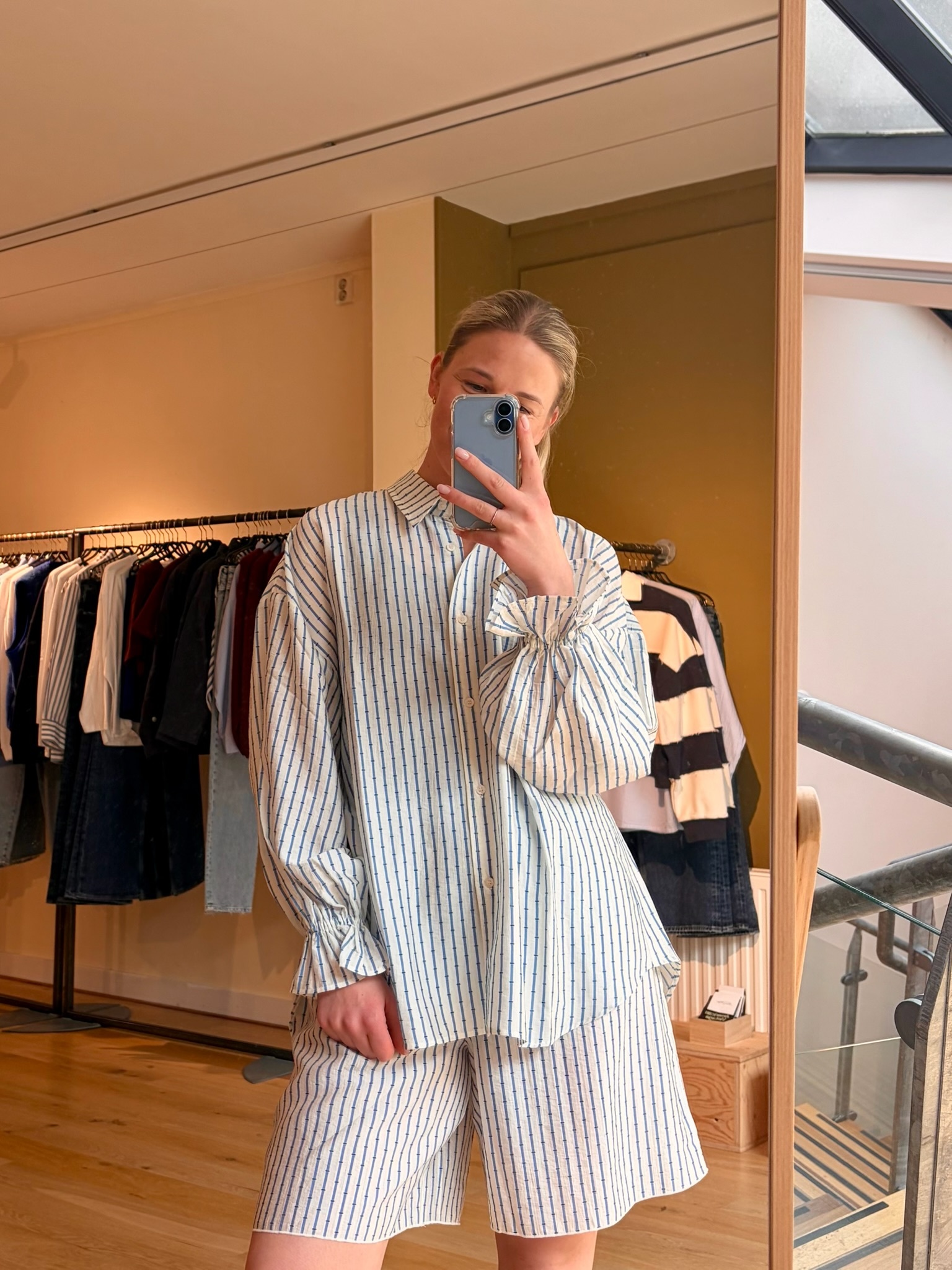 Deze gestreepte korte broek van American Vintage heeft een lichte en ontspannen uitstraling en is prettig om te dragen op warme dagen. De short is gemaakt van een soepele stof en heeft een elastische tailleband, waardoor hij comfortabel zit en makkelijk aan te trekken is. Het fijne streeppatroon in blauw op een lichte ondergrond geeft deze korte broek een frisse, tijdloze look. De wijde vorm zorgt voor bewegingsvrijheid en een luchtig gevoel. Een fijne short die mooi te combineren is met de bijpassende blouse.