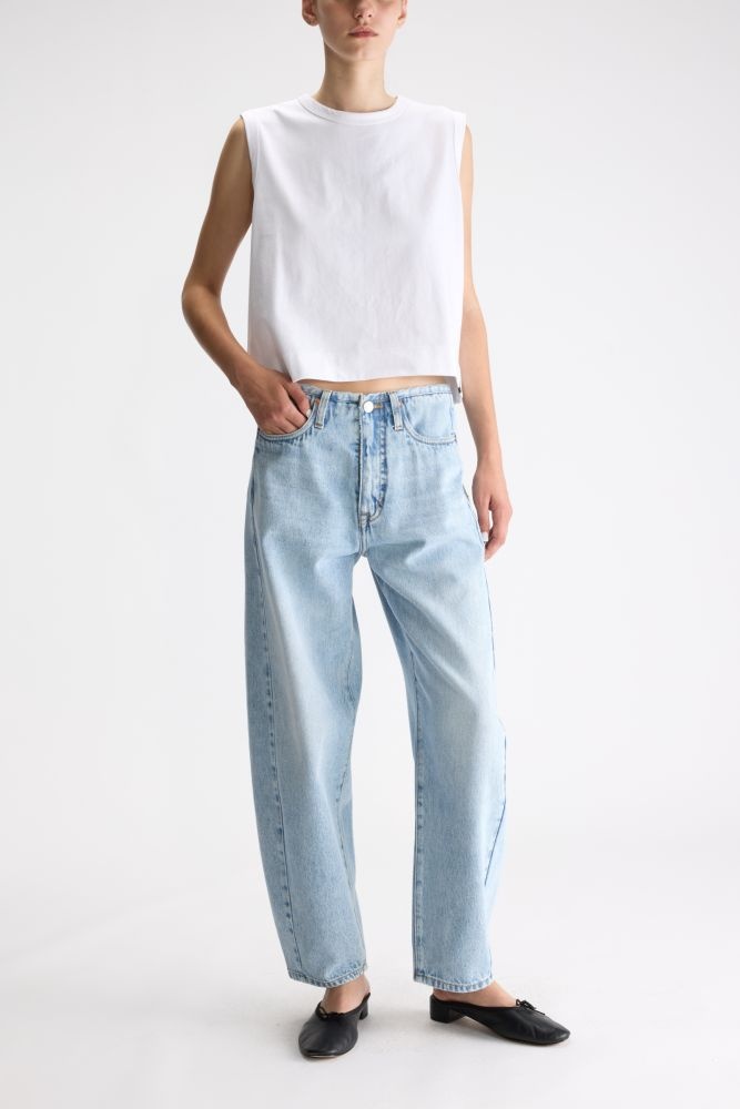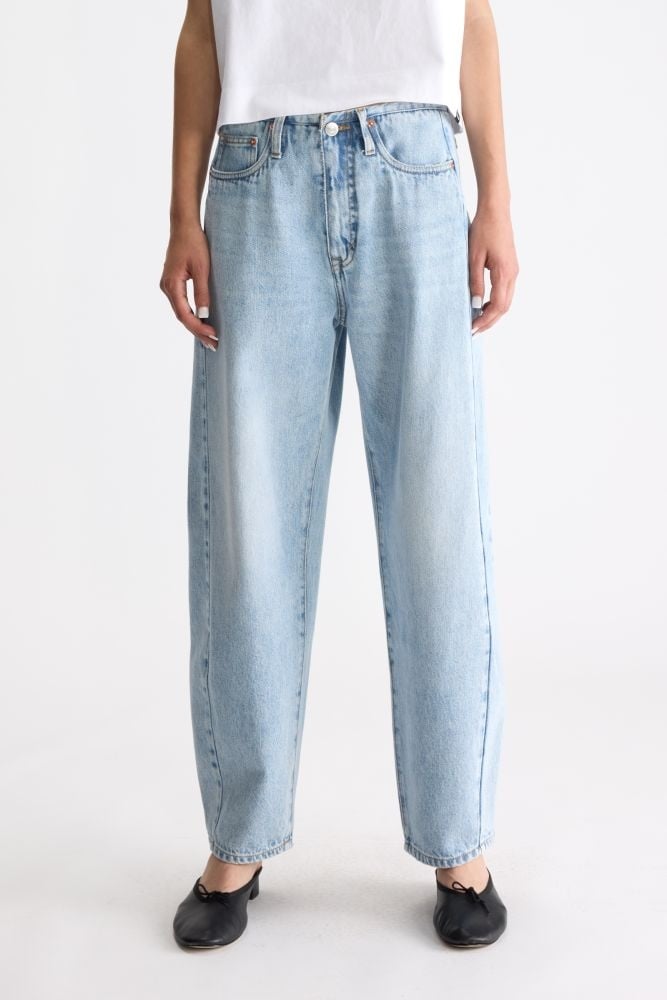 Deze lichtblauwe jeans van Bellerose heeft een relaxed, recht model met een subtiele stonewash die de broek een tijdloze, casual uitstraling geeft. De soepele blauwe denim valt mooi recht langs het been en biedt tegelijk veel draagcomfort. Dankzij de klassieke vijfzakken en lichte kleur is dit een veelzijdige denim die je eenvoudig combineert met luchtige blouses, eenvoudige T-shirts of knitwear voor een meer aangeklede look.
