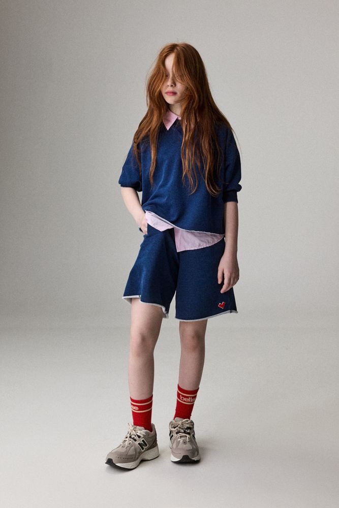 Deze korte broek van Bellerose is uitgevoerd in een diepe blauwe kleur met een licht gewassen uitstraling. De short is gemaakt van zachte sweatstof en heeft een comfortabele elastische tailleband, waardoor hij prettig zit en makkelijk aan te trekken is. De korte broek heeft een relaxed silhouet met subtiele steekzakken en een onafgewerkte zoom, wat zorgt voor een nonchalante look. Het kleine hartlogo onderaan geeft de short een herkenbaar Bellerose-detail. Deze short laat zich eenvoudig combineren met een t-shirt, top of sweatshirt voor een casual outfit.