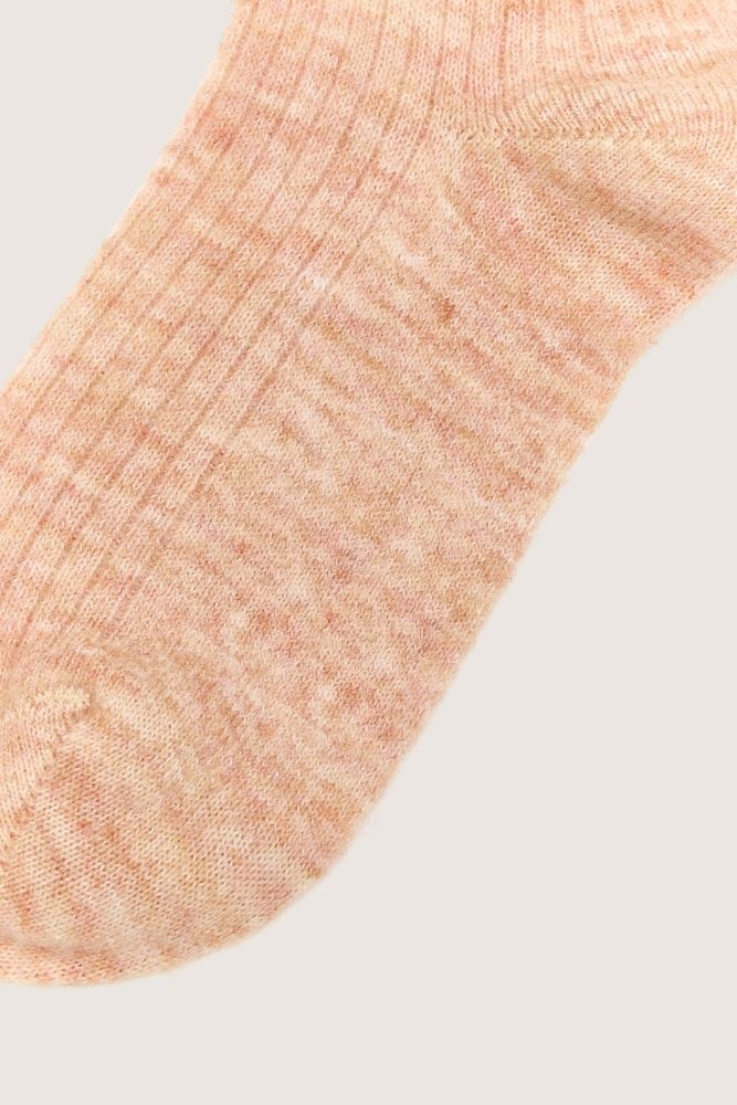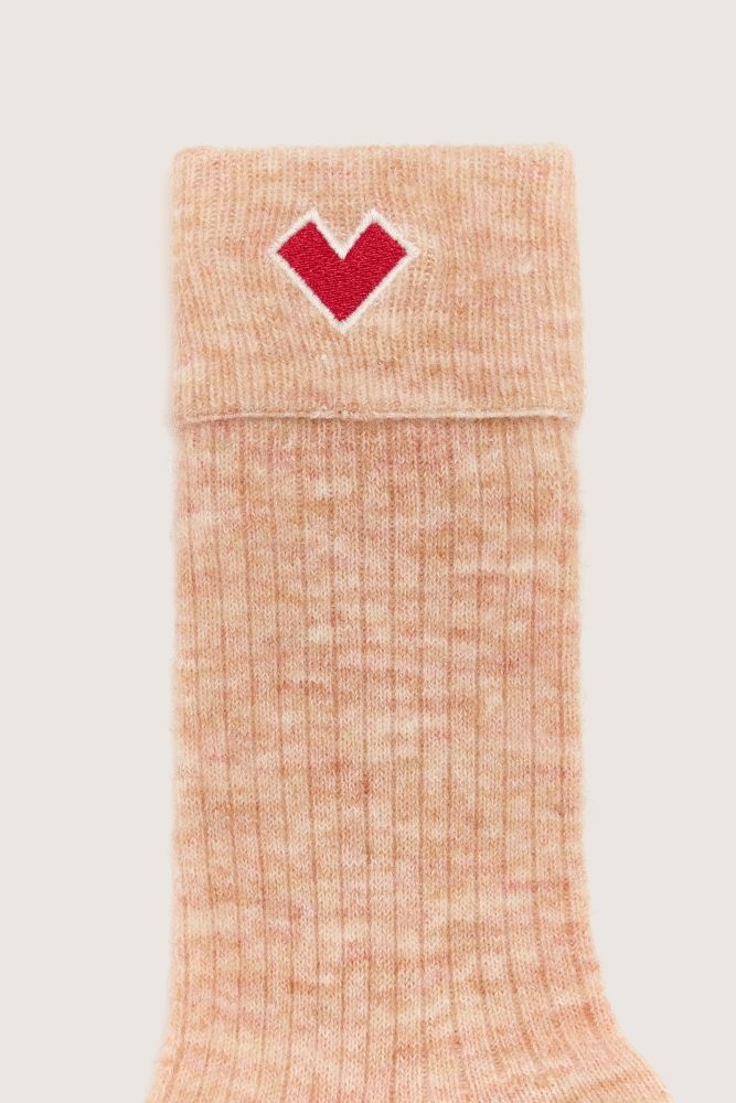 Deze sokken van Bellerose in de kleur Misty geven een vrolijk accent aan je outfit. De warme perzik roze tint is gemêleerd en krijgt een vrolijke touch door het geborduurde rode hartje aan de zijkant. Gemaakt van een comfortabele mix met wol en polyamide, voelen ze zacht aan en bieden ze voldoende warmte voor de koudere dagen.