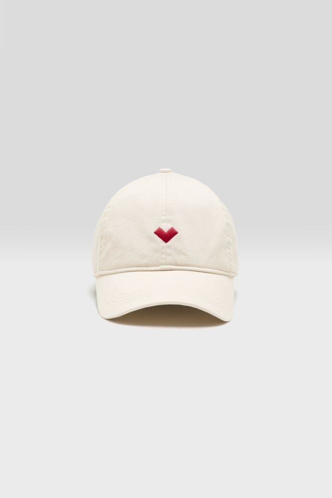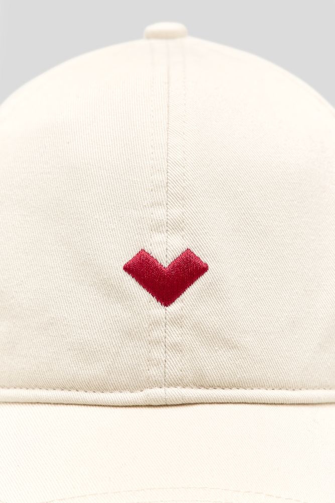 Deze crèmekleurige pet is een tijdloze accessoire die elke outfit een subtiele twist geeft. Gemaakt van stevig katoen en voorzien van een geborduurd rood detail aan de voorkant, is deze cap zowel stijlvol als praktisch. De verstelbare sluiting aan de achterkant zorgt voor een comfortabele pasvorm, geschikt voor verschillende leeftijden. Ideaal voor zonnige dagen of als casual toevoeging aan een outfit. De neutrale crème tint maakt hem makkelijk te combineren, terwijl het rode grafische hart net dat beetje extra karakter toevoegt. Gemaakt van 100% katoen.