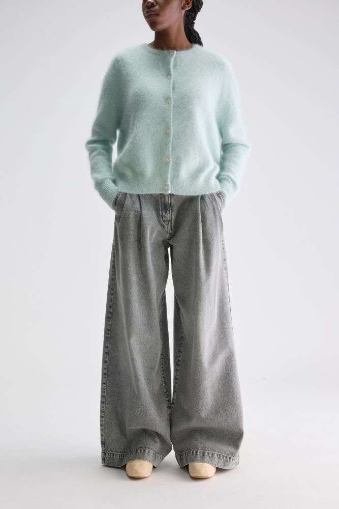 Deze zachte cardigan van Bellerose komt in een frisse mintgroene tint die meteen licht en zachtheid toevoegt aan je outfit. De pluizige structuur geeft het vest een comfortabel en luchtig karakter, terwijl de ronde hals en subtiele knoopsluiting zorgen voor een tijdloze uitstraling. Dankzij het rechte silhouet en de blauwe kleur is dit vest makkelijk te combineren met een jeans, een ruimvallende broek of een jurk voor een ontspannen, vrouwelijke look.