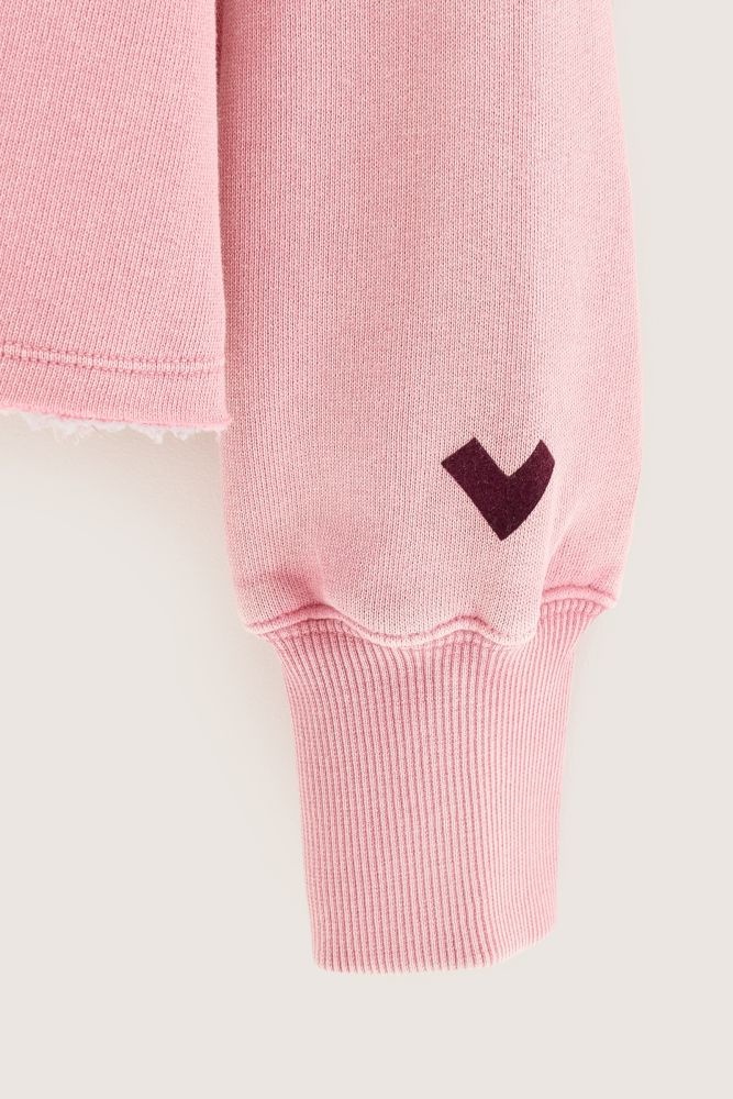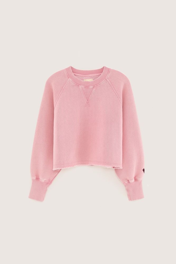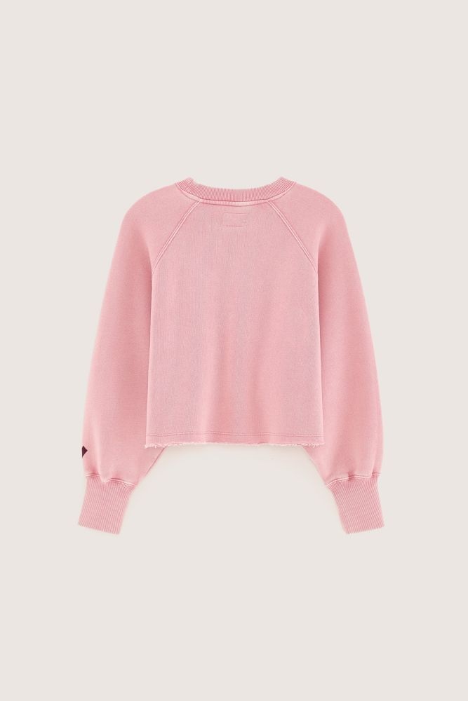 Deze lichtroze sweater van Bellerose is een comfortabele trui met een lichte cropped pasvorm. Het roze sweatshirt is gemaakt van zacht katoen met een lichte vintage afwerking. Op de mouw zit een klein rood hartje als detail. De trui is ideaal om te dragen als casual outfit voor een dagje thuis of voor een sportieve look.