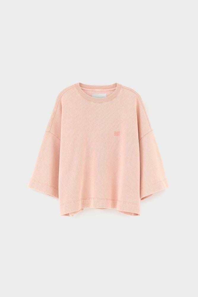 Deze zachte, roze sweatshirt van Bellerose heeft een ontspannen, boxy pasvorm met extra wijde halve mouwen voor een moderne, luchtige look. De subtiele kleur en het kleine geborduurde detail voorop maken het een fijne basic die je makkelijk combineert met een jeans, een rok of een wijde broek. Comfortabel, stijlvol en perfect voor everyday outfits.