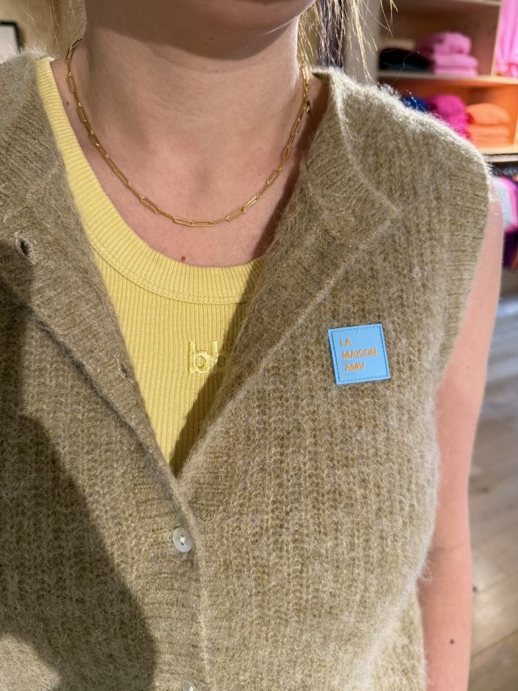 Deze ribgebreide tanktop van Bellerose heeft een frisse gele kleur en sluit mooi aan op het lichaam. De ronde hals en brede schouderbanden van dit hemd geven het ontwerp een sportieve, vrouwelijke uitstraling. Dankzij de aangesloten pasvorm combineer je de singlet moeiteloos met zowel casual broeken als luchtige rokken.