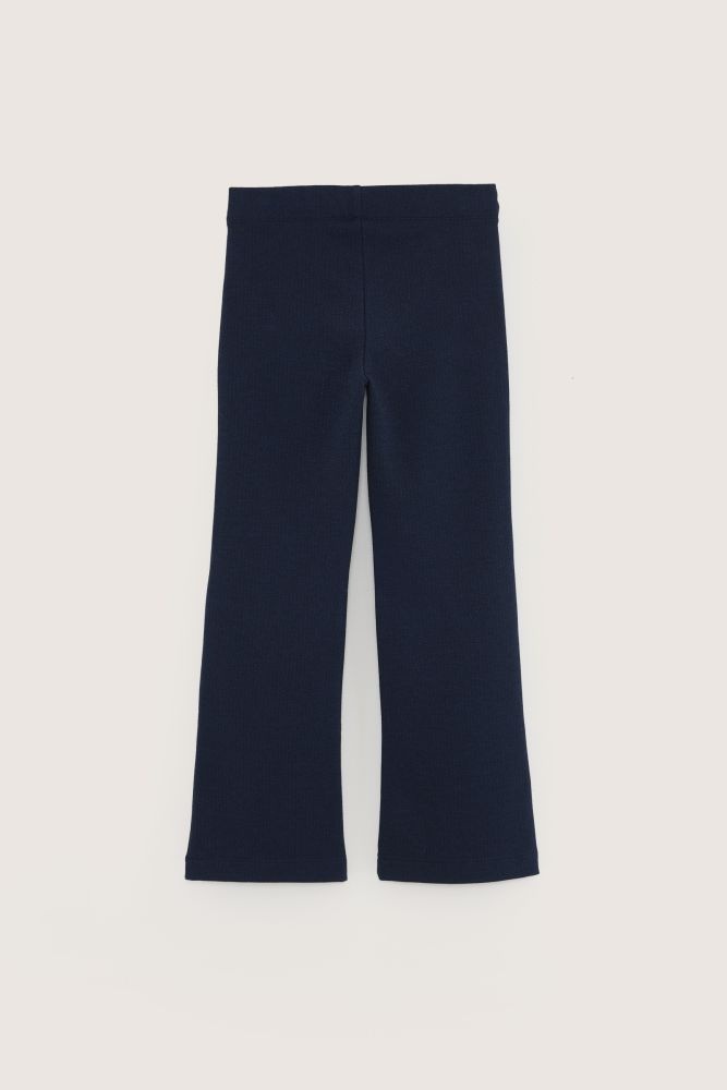 Deze donkerblauwe flared broek van Bellerose is een comfortabele en stijlvolle keuze voor kinds. De legging is gemaakt van een stevige stretchstof met subtiel visgraatmotief en heeft een elastische tailleband die zorgt voor een makkelijke pasvorm. De uitlopende pijpen geven de broek een moderne twist, terwijl het materiaal soepel meebeweegt tijdens het dragen.