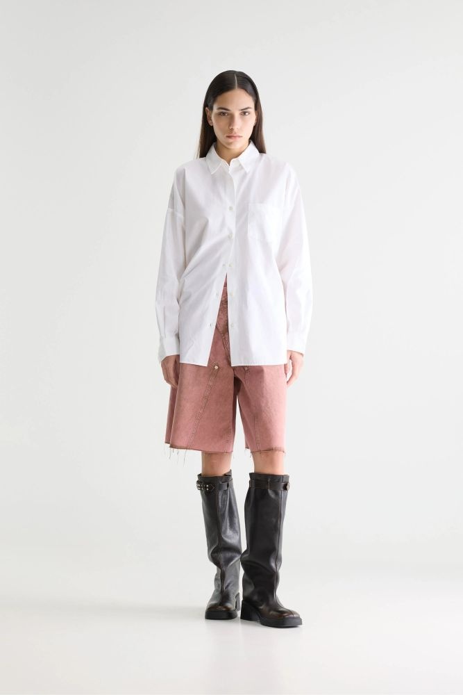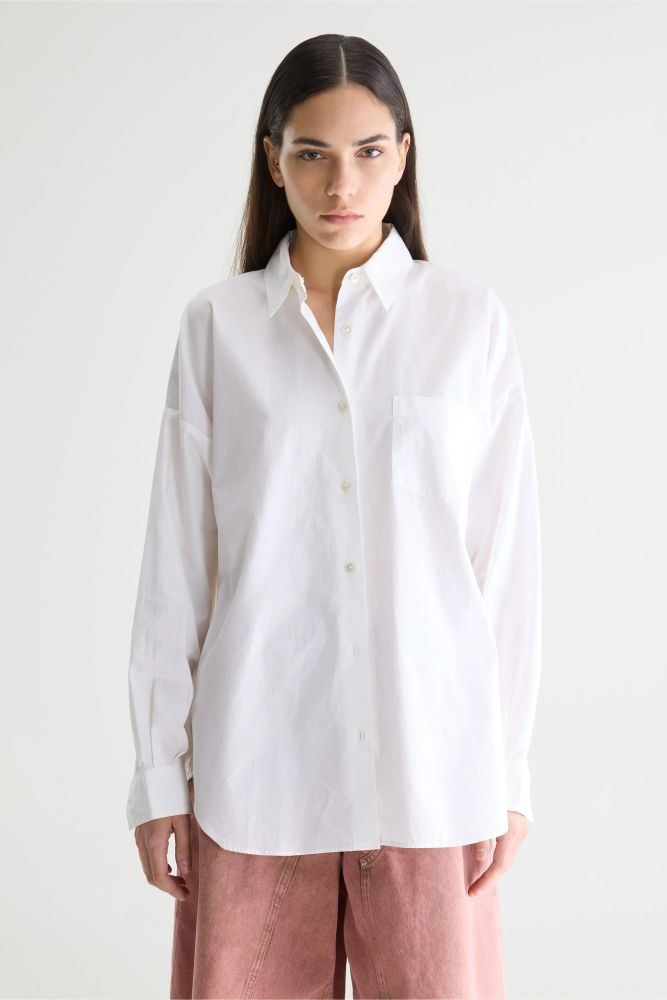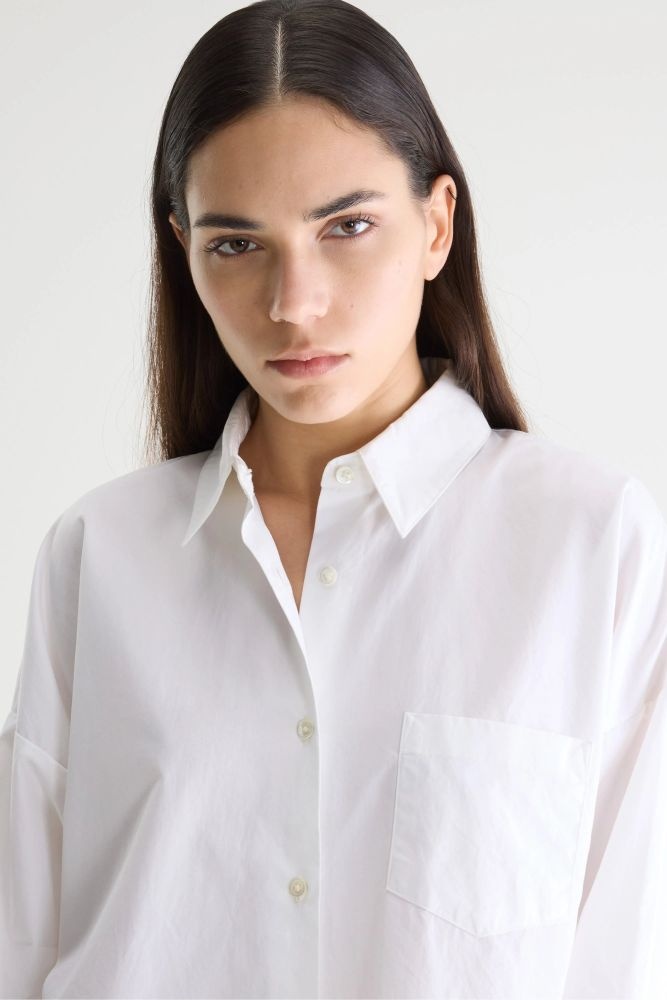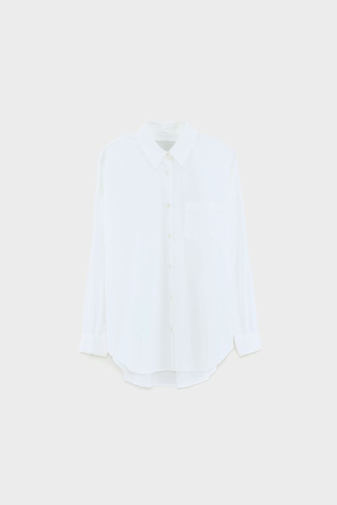 De lichte katoenen kwaliteit voelt comfortabel aan en valt soepel om het lichaam. Dankzij de rechte snit en afgeronde zoom is deze blouse veelzijdig te dragen, zowel los over een jeans als ingestopt in een pantalon of rok. Het minimalistische design maakt dit een essentieel item binnen elke garderobe.