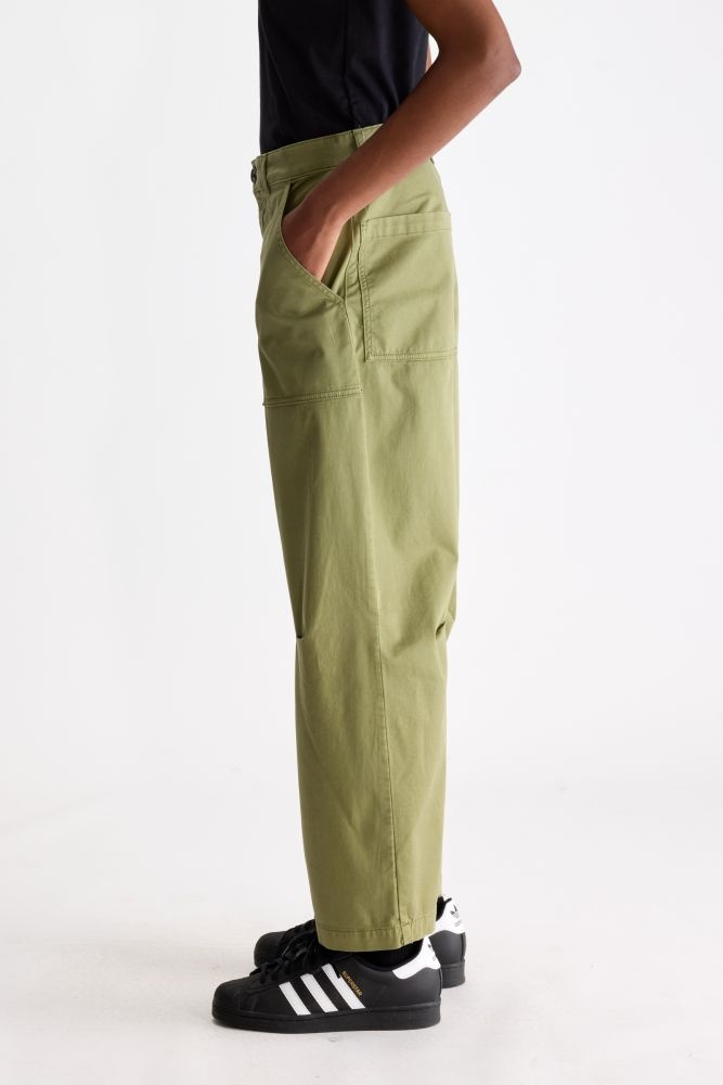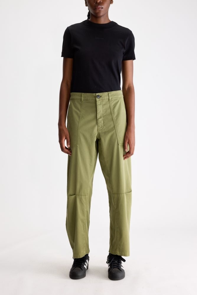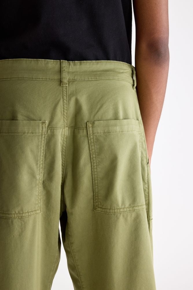 Deze Bellerose broek heeft een comfortabele, loose fit met een frisse groene kleur die direct opvalt. Het tijdloze ontwerp met rechte pijpen en subtiele stiksels geeft de broek een moderne, relaxte uitstraling. Door het zachte katoen voelt hij licht en soepel aan, ideaal voor dagelijks gebruik. De olijfgroene tint laat zich makkelijk combineren met basic tops, knitwear of een eenvoudige blouse voor een moeiteloos stijlvolle look.