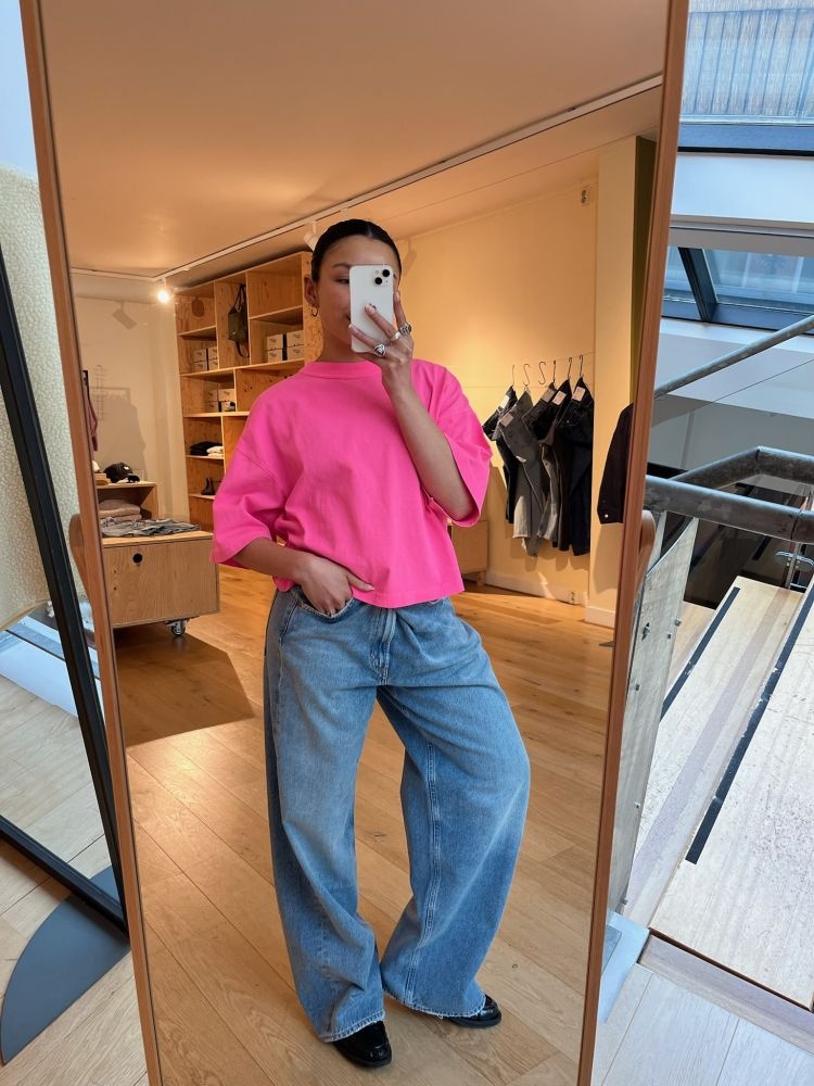 Dit t-shirt van Bellerose heeft een heldere roze kleur die meteen een energieke uitstraling geeft. De boxy vorm, verlaagde schouders en iets kortere lengte zorgen voor een moderne, ontspannen look. Dankzij de luchtige pasvorm combineer je deze top makkelijk met denim, shorts of een wijde broek. Een opvallende basic die elke outfit een vrolijke boost geeft.