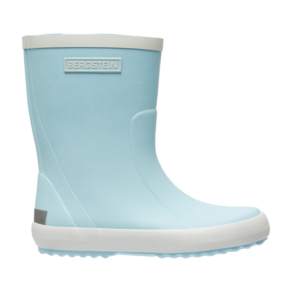 Comfortabele en soepele regenlaarzen van Bergstein. De laarzen komen in een lichtblauwe kleur met witte details. Gemaakt van soepel rubber en gevoerd met zacht katoen.