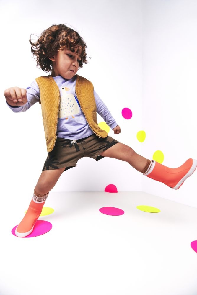 Klassieke regenlaarsjes om lekker mee in de plassen te stampen. De laarzen zijn met de hand gemaakt en zijn lekker soepel. Deze neon oranje regenlaarzen zijn een echte eye-catcher.