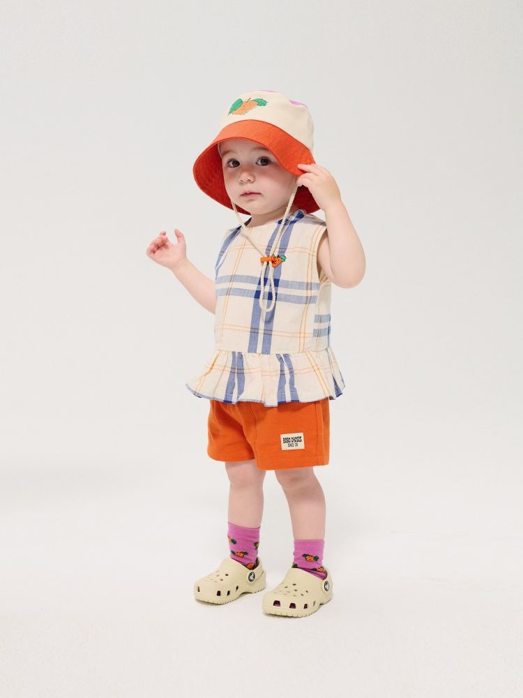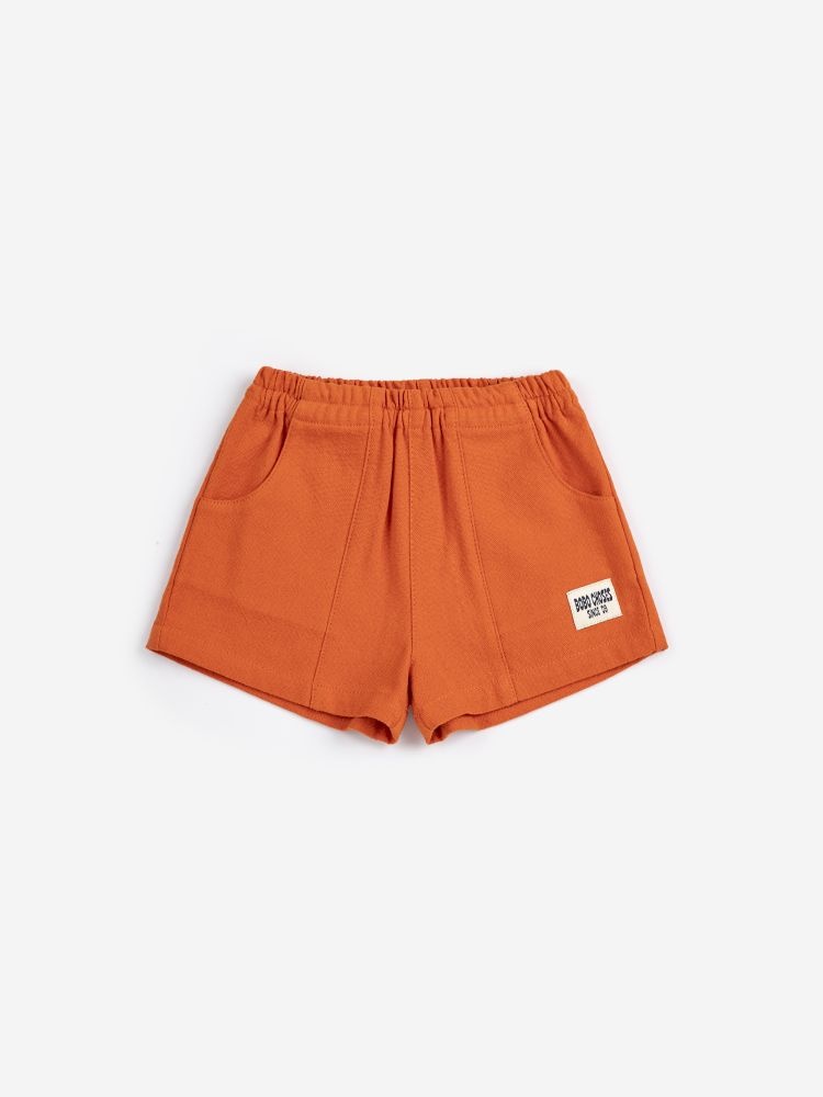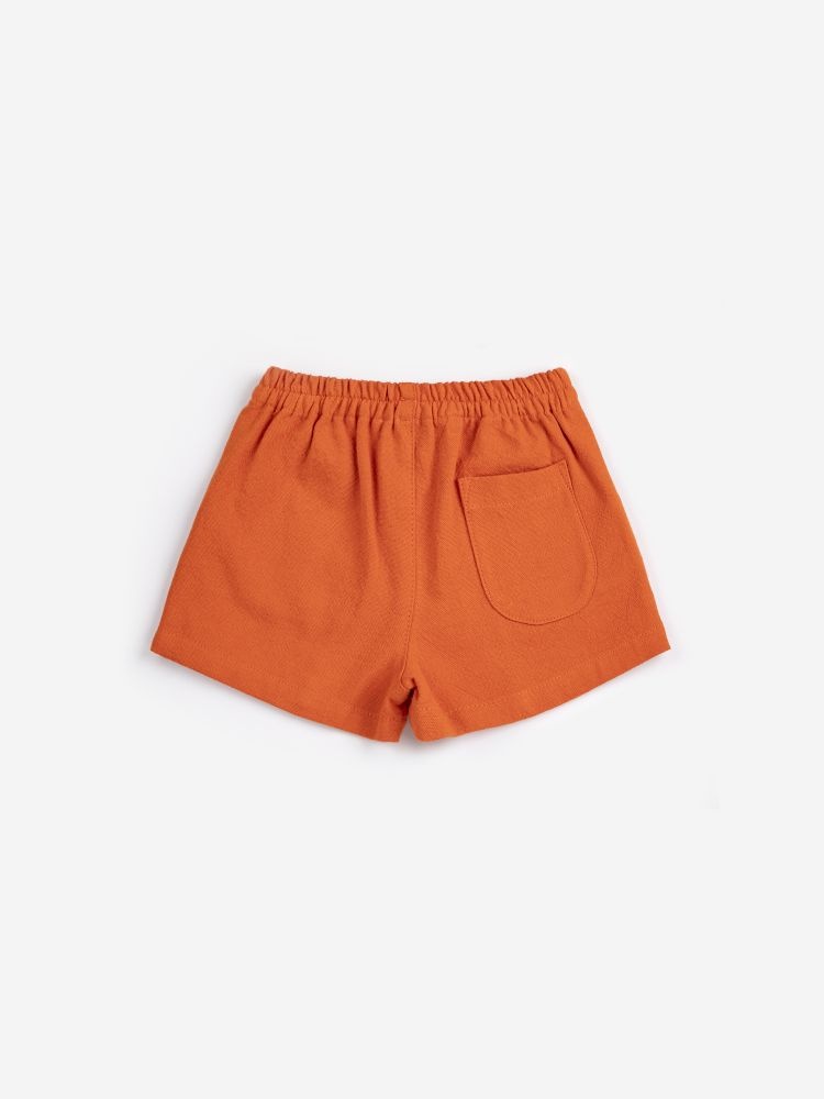 Deze korte broek van Bobo Choses is uitgevoerd in een warme oranje kleur en gemaakt van stevige, comfortabele katoenkwaliteit. De short heeft een elastische tailleband en praktische steekzakken, waardoor hij prettig draagt tijdens spelen en bewegen. De rechte pasvorm geeft de korte broek een ontspannen uitstraling en maakt combineren met een t-shirt, sweater of top met lange mouwen eenvoudig. Een herkenbaar Bobo Choses-label aan de zijkant zorgt voor een subtiel merkdetail. Een fijne basic short voor elke dag.
