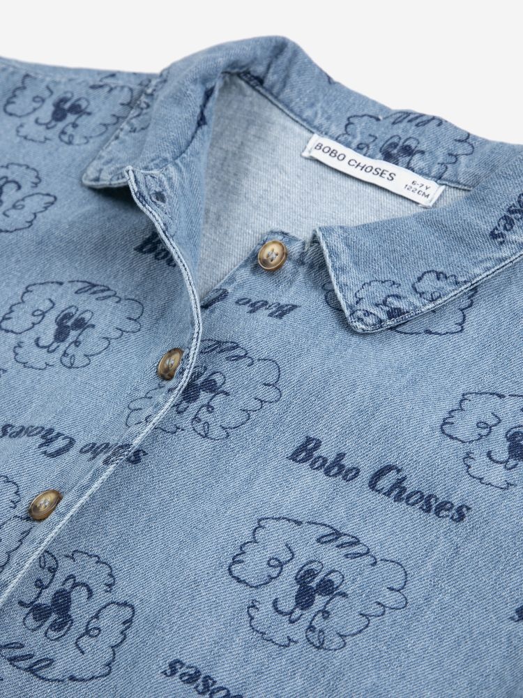 Dit lichtblauwe overhemd blouse van Bobo Choses is gemaakt van zacht denimkatoen en heeft een all-over print met speelse illustraties en het Bobo Choses-logo. Deze korte mouwen blouse, heeft een relaxte pasvorm, een klassieke kraag en een knoopsluiting aan de voorkant. De wassing geeft de blouse een casual uitstraling, passend bij de herkenbare stijl van Bobo Choses. Mooi te combineren met een short of broek voor een comfortabele, zomerse look.
