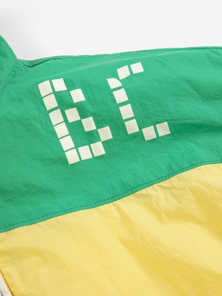 Deze jas van Bobo Choses heeft een speels colourblock ontwerp in groen, geel en oranje en is gemaakt voor dagelijks gebruik. De lichtgewicht zomerjas sluit met een rits en heeft elastische boorden bij de mouwen en zoom voor een comfortabele pasvorm. De opstaande kraag biedt extra bescherming en het BC-detail op de borst zorgt voor een herkenbare Bobo Choses uitstraling. Een fijne zomer jas voor actieve kinderen, makkelijk te combineren en prettig om te dragen.