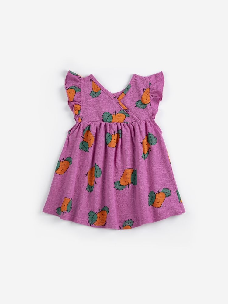 Dit jurkje van Bobo Choses is een speels en comfortabel item voor jonge kinderen. Het jurkje is uitgevoerd in een paarse kleur en heeft een all-over print van een vrolijke citrusvrucht. De stof is gemaakt van biologisch katoen wat zorgt voor een zacht en prettig draaggevoel. De korte mouwen met ruffle-afwerking geven het jurkje een luchtige en kinderlijke uitstraling. Dankzij de losse pasvorm kan je kind vrij bewegen, ideaal voor elke dag. Een fijn jurkje dat makkelijk te combineren is.