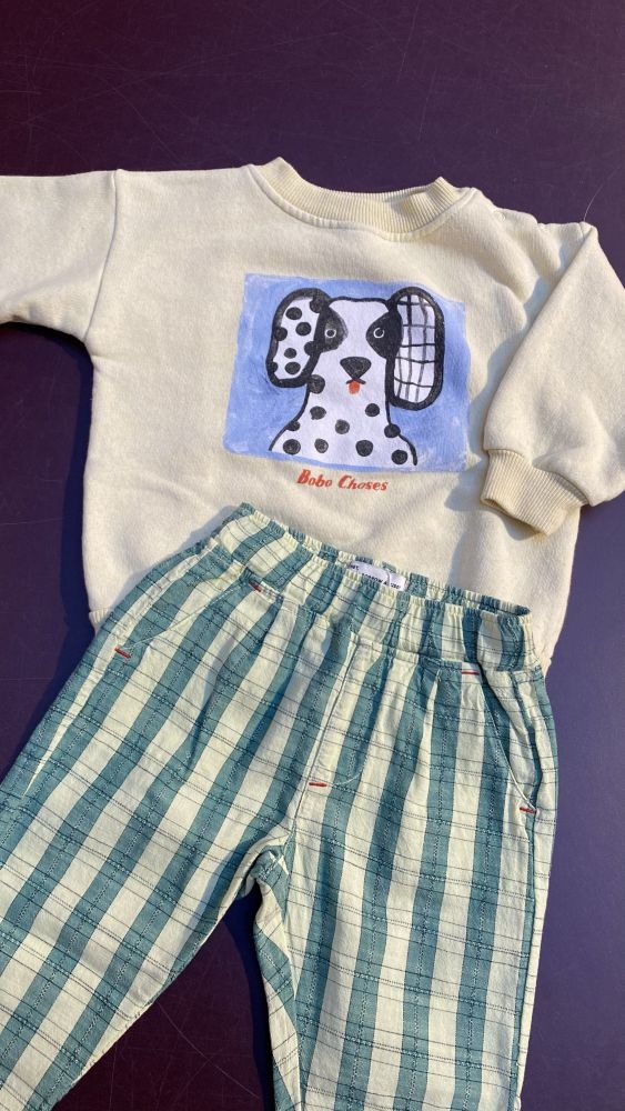 Deze Bobo Choses sweater heeft een zachte, gele kleur en is afgewerkt met een speelse illustratie van een hond op de voorkant. De trui heeft een comfortabele pasvorm met lange mouwen, ribboorden en een ronde hals. Dankzij de drukknopen op de schouder is deze sweatshirt makkelijk aan en uit te trekken, wat fijn is voor de allerkleinsten. De zachte sweatkwaliteit voelt prettig aan op de huid en maakt deze sweater geschikt voor dagelijks dragen. Mooi te combineren met een broek of legging voor een comfortabele outfit.