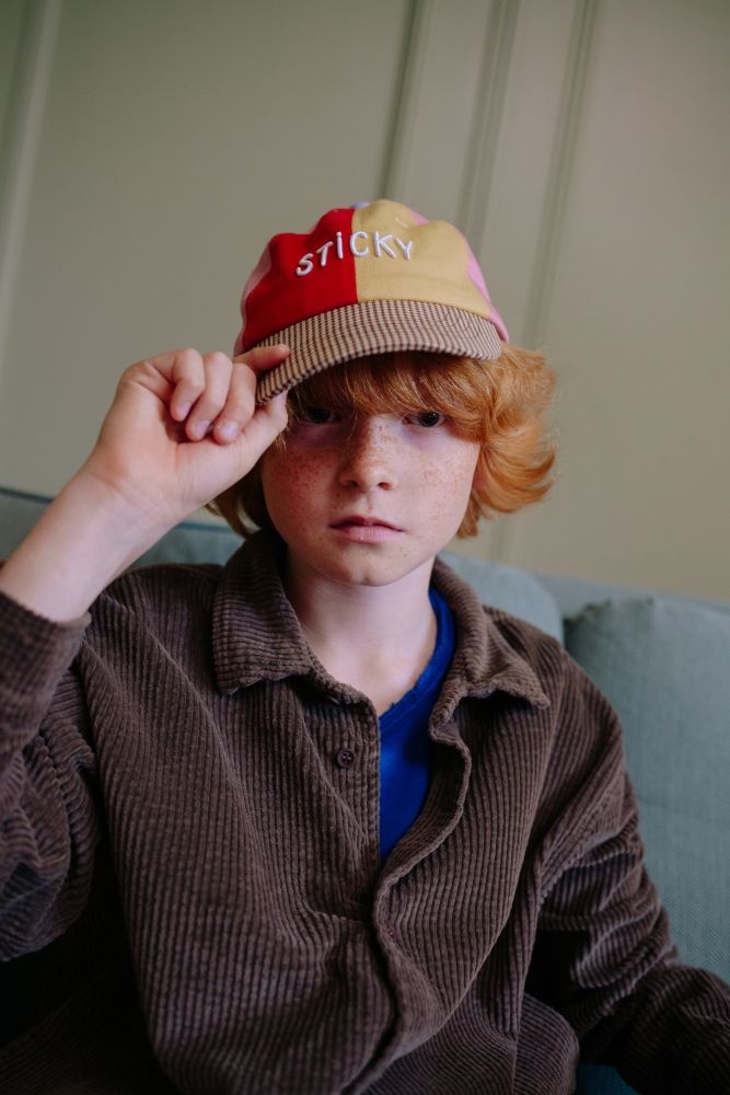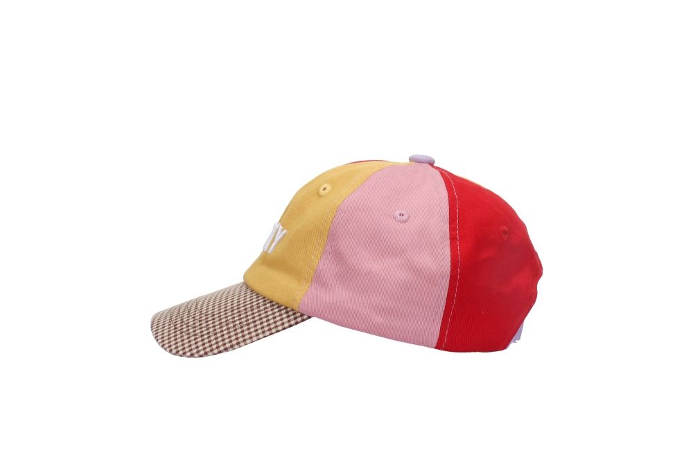 Deze pet van Sticky Lemon is een echte blikvanger met een speelse kleurencombinatie. De cap is uitgevoerd in colorblocking met rood, geel en roze panelen. Op de voorkant staat “STICKY” geborduurd in wit, wat zorgt voor een herkenbaar en vrolijk detail. De klep is afgewerkt met een bruin met witte gingham ruit, wat de pet een eigenzinnige twist geeft.