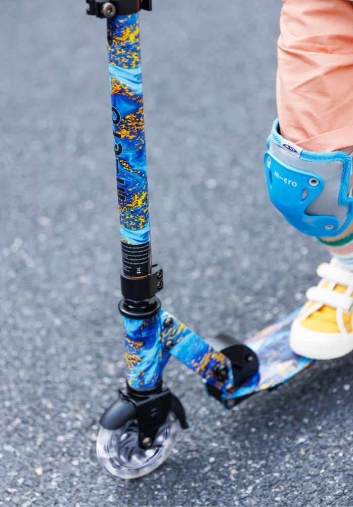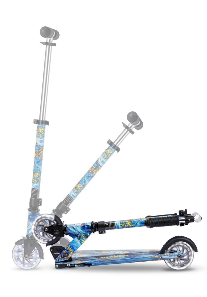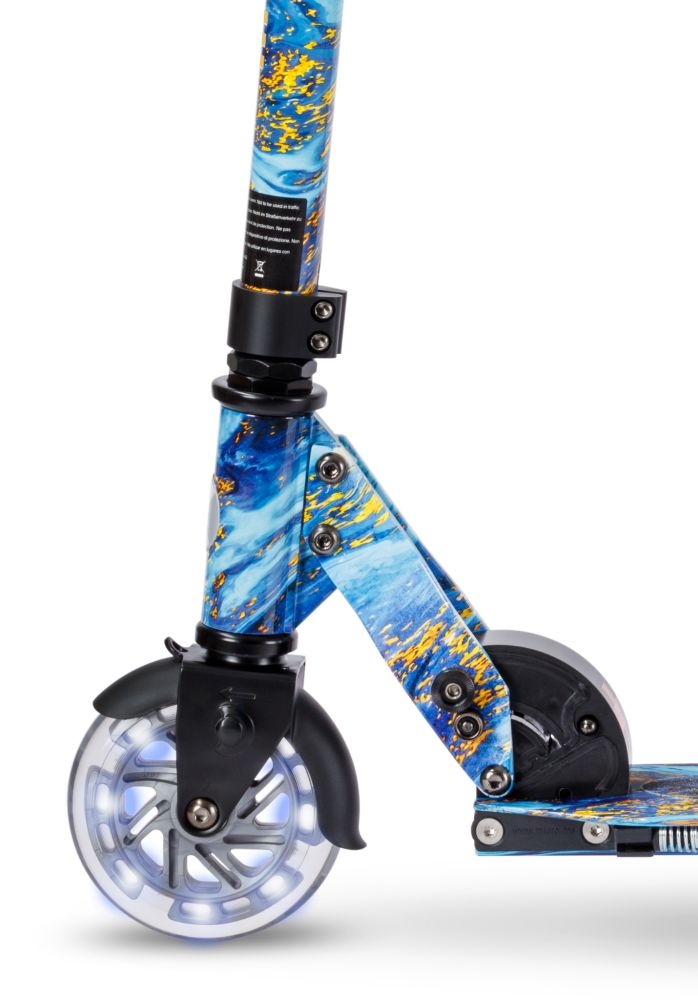 Deze speciale Art Collection – Sterrennacht editie valt op door het creatieve sterrenontwerp in diepe, nachtelijke tinten. Het unieke patroon prikkelt de verbeelding en geeft een stijlvol accent aan elke rit. Of je nu over het plein scheurt of door de straat wandelt, deze step ziet er altijd fantastisch uit.