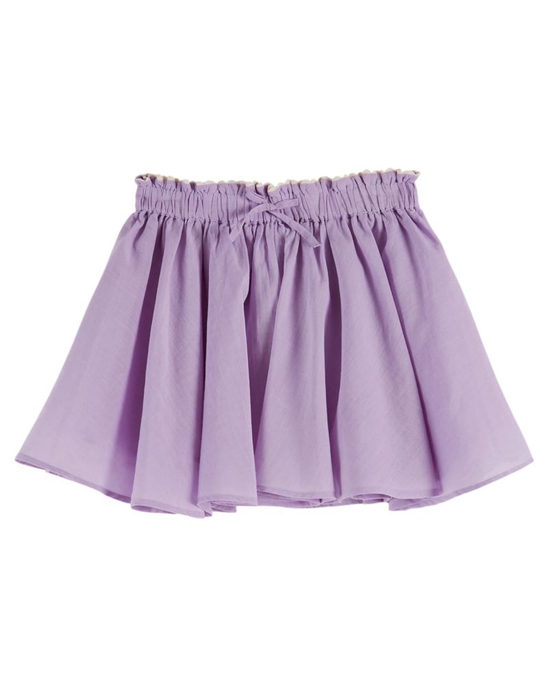 Dit lila rokje van Emile et Ida heeft een luchtige, speelse uitstraling en een fijne zwier dankzij de wijdvallende pasvorm. De elastische tailleband met subtiel strikje zorgt voor een comfortabele fit en maakt het rokje makkelijk aan en uit te trekken. De zachte paarse tint geeft het item een rustige, tijdloze look die mooi combineert met een top, blouse of trui. Een veelzijdig rokje dat zowel casual als iets gekleder gedragen kan worden.