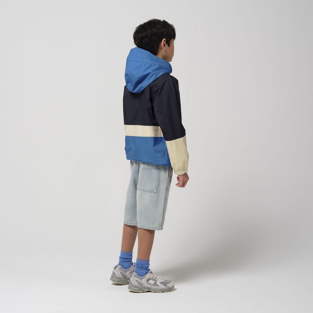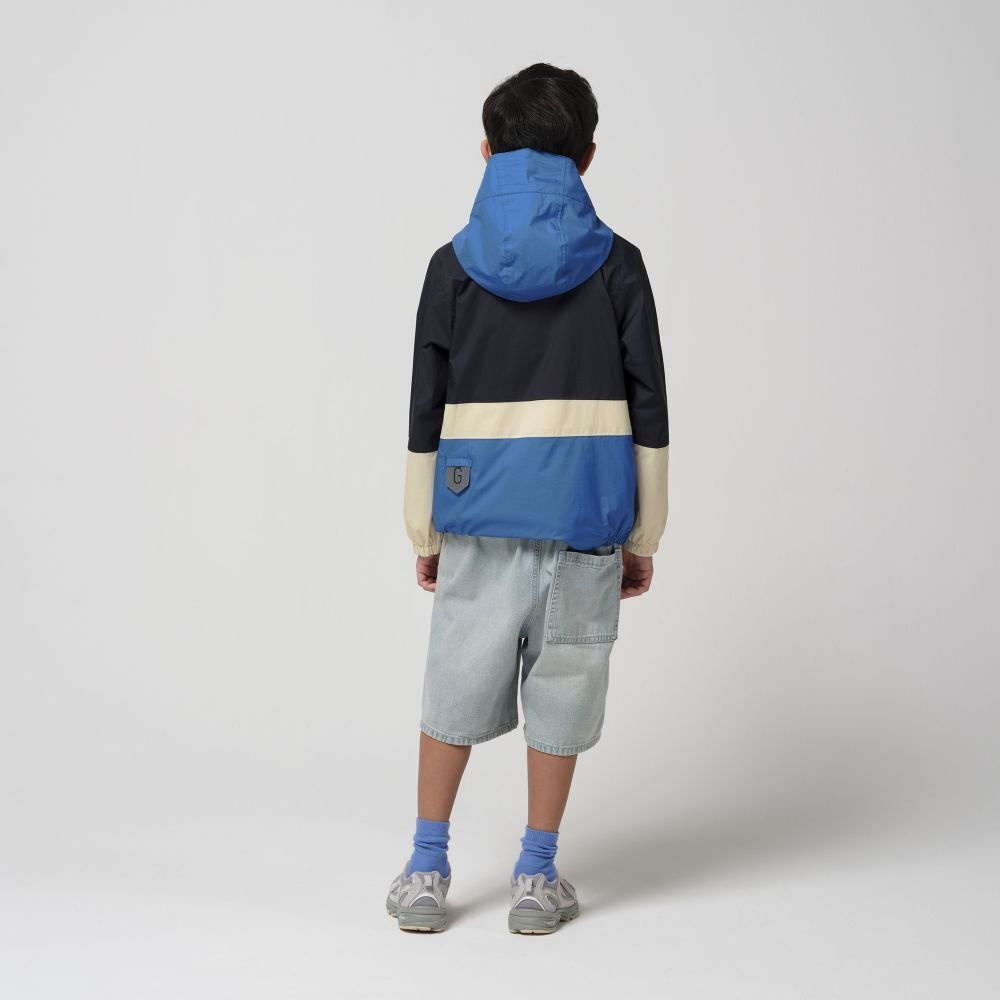 Deze Gosoaky kinderjas is een functionele en sportieve regenjas met een frisse colorblock uitstraling in blauw, donkerblauw en crème, ideaal voor actieve kinderen. De zomer jas is gemaakt van high performance Summer Nylon en combineert een licht gewicht met sterke bescherming tegen regen dankzij de waterdichte coating tot 8000 mm column pressure. De volledig getapete naden en de fluorvrije DWR Bionic Finish® Eco zorgen ervoor dat water geen kans krijgt, terwijl het ademende materiaal helpt om warmte en comfort goed te reguleren tijdens bewegen. De vaste capuchon en elastische boorden bieden extra bescherming tegen wind en regen. Het subtiele Gosoaky pinguïnlogo op de borst geeft de jas een herkenbaar detail. Zoals alle Gosoaky jassen is dit model BPA- en AZO-vrij, voldoet het aan strenge kindveiligheidsnormen en is het volledig vegan.