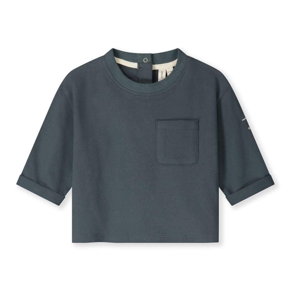 Baby Longsleeve Pocket Tee GOTS Blue Grey