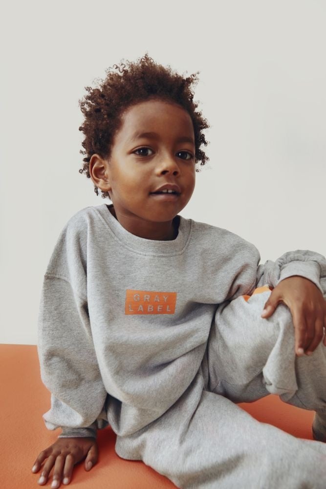 Gray Label Gray Label | Dropped Shoulder Sweater GOTS 15Y Grey Melange / Bright Melon