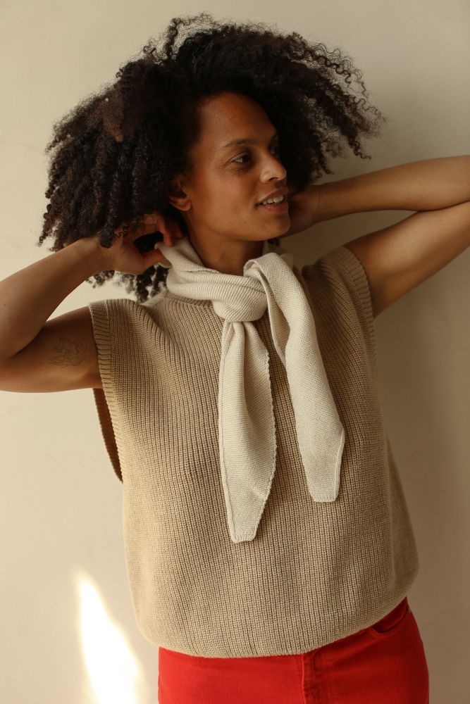 De Hvid Josephine sjaal in de kleur Cream is een elegante en veelzijdige accessoire, perfect voor elke gelegenheid. Dankzij de driehoekige vorm draag je deze sjaal moeiteloos op verschillende manieren, of dat nu nonchalant om de hals is of als warme omslag. Het breiwerk van 100% extra fijne merinowol voelt zacht aan op de huid, zonder te prikken, en biedt zowel warmte als ademend comfort. De tijdloze crème kleur combineert prachtig met elke outfit en maakt de sjaal een blijvende favoriet in de garderobe.
