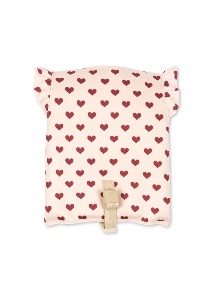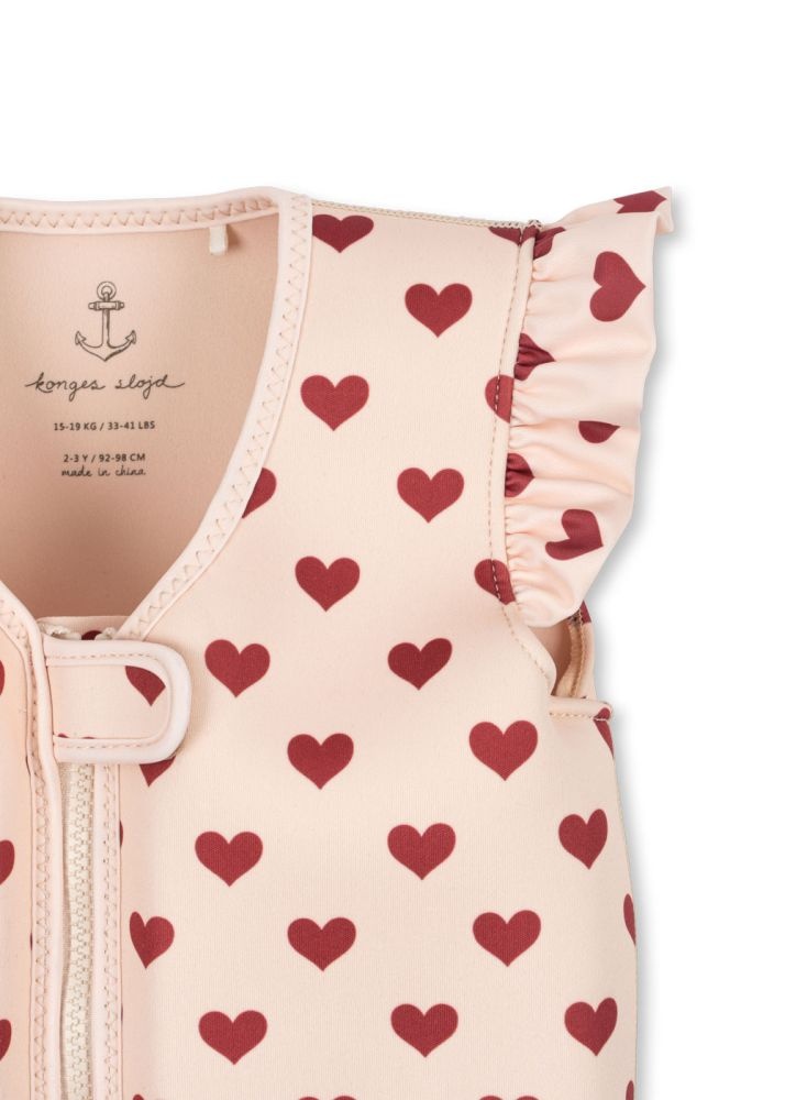 Dit beige zwemvest met een charmante rode hartjesprint is een perfecte keuze voor kinderen die het water willen verkennen. Het zwemvest biedt extra drijfvermogen en helpt je kind zelfverzekerd te zwemmen. Met speelse ruches op de schouders en een praktisch ontwerp met een stevige rits aan de voorkant en een verstelbare gesp aan de onderzijde. De uitneembare schuimblokken maken het mogelijk het drijfvermogen aan te passen aan de behoeften van je kindje. Alleen te gebruiken onder toezicht van een volwassene. Een mix van veiligheid, comfort en stijl voor kleine waterratjes.