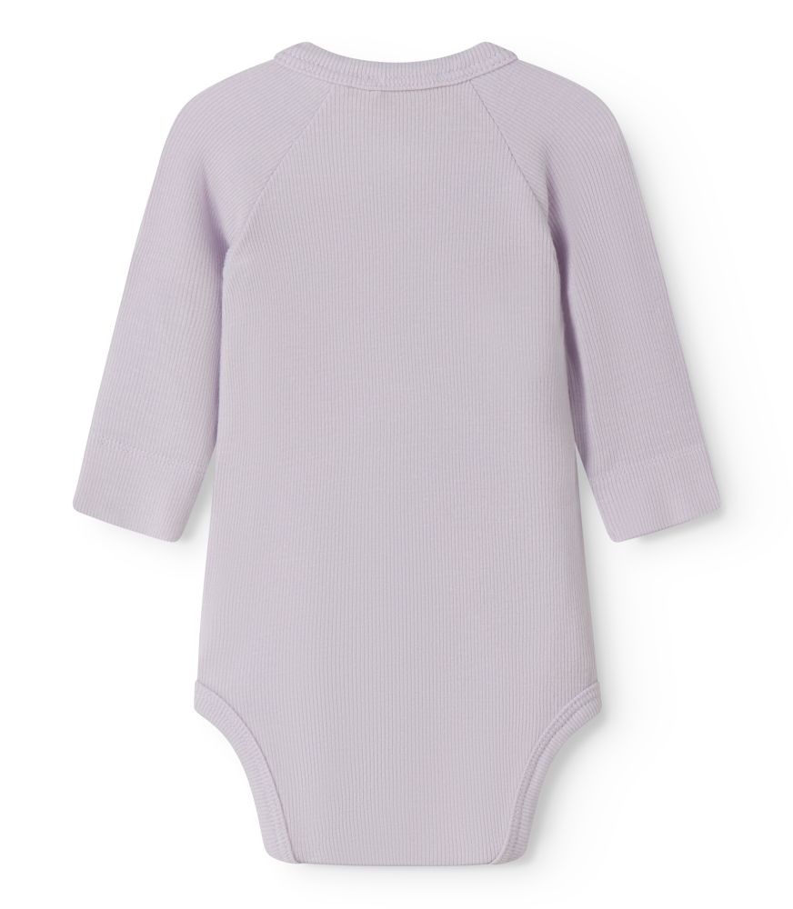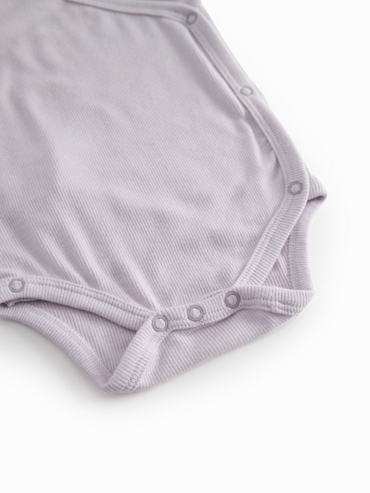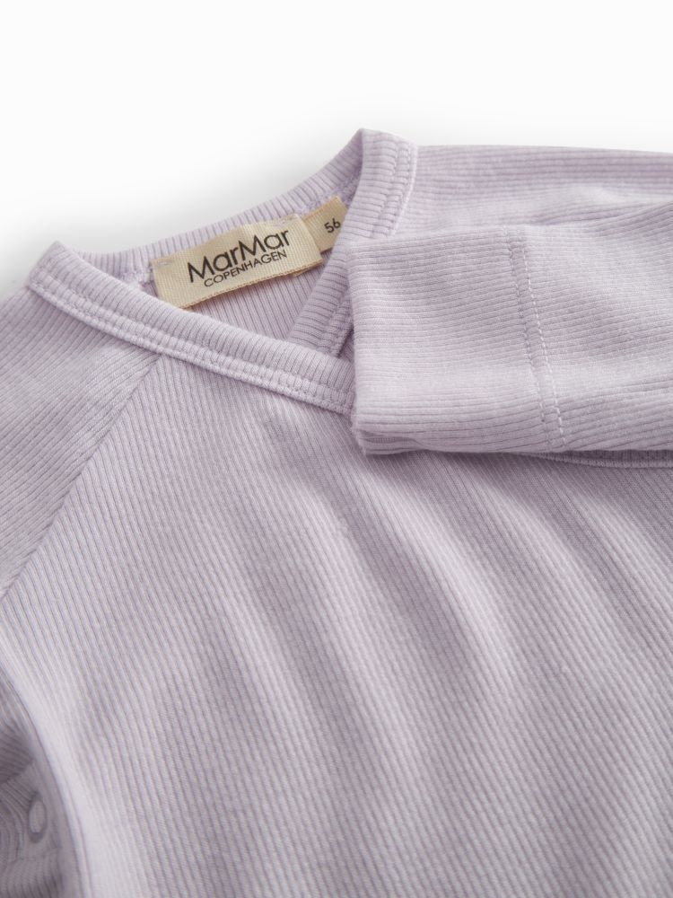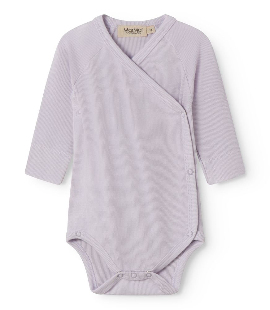 Deze overslag romper van MarMar is een zacht en praktisch basisitem voor de allerkleinsten. De romper is uitgevoerd in een lichte paarse of lila kleur met een fijne ribstructuur, wat zorgt voor een rustige en tijdloze uitstraling. Dankzij de overslagsluiting met drukknoopjes aan de zijkant en onderaan is aan- en uitkleden eenvoudig, ideaal voor pasgeboren baby’s. De lange mouwen en comfortabele pasvorm maken deze MarMar romper geschikt voor dagelijks gebruik. Mooi te combineren met bijpassende broekjes, leggings of een vestje voor een complete set.