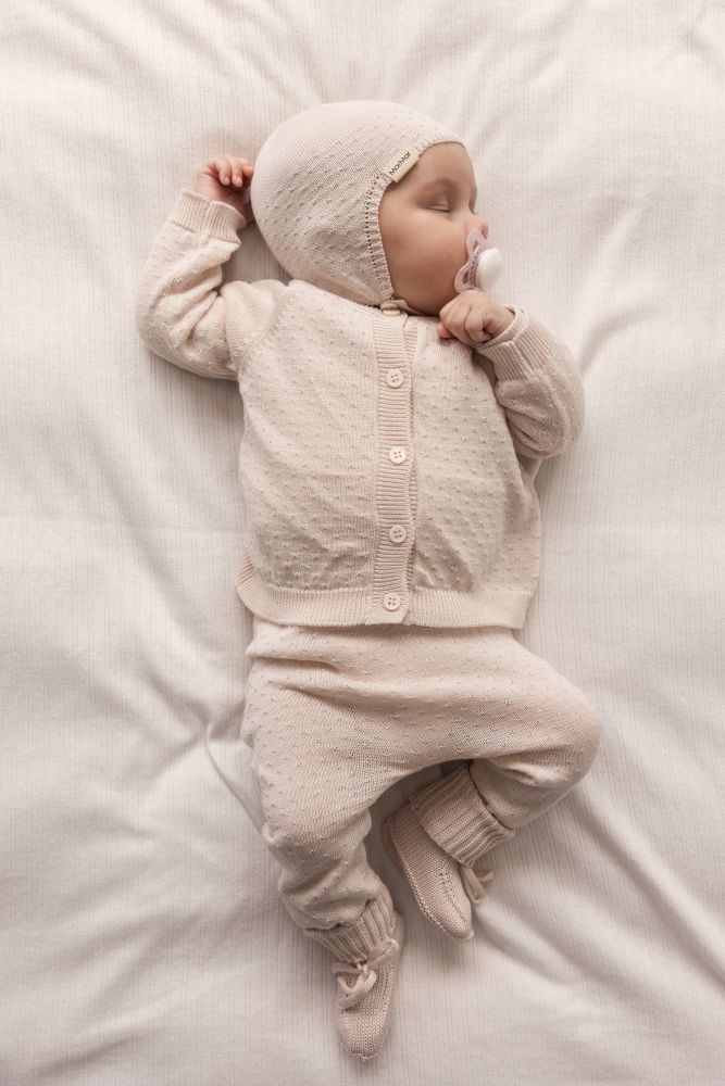 Deze MarMar broek is uitgevoerd in een zachte, fijngebreide stof in een zachte roze tint. De subtiele structuur in het breisel geeft de broek een rustige, verfijnde uitstraling. De elastische tailleband zorgt voor een comfortabele pasvorm en maakt het broekje makkelijk aan en uit te trekken. Dankzij de lange pijpen en het soepele materiaal beweegt de broek prettig mee, ideaal voor dagelijks gebruik. Mooi te combineren met een vestje uit de MarMar-collectie voor een complete set.