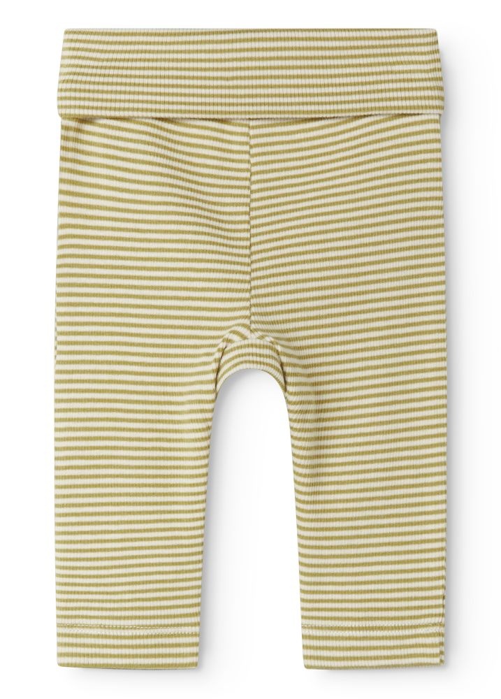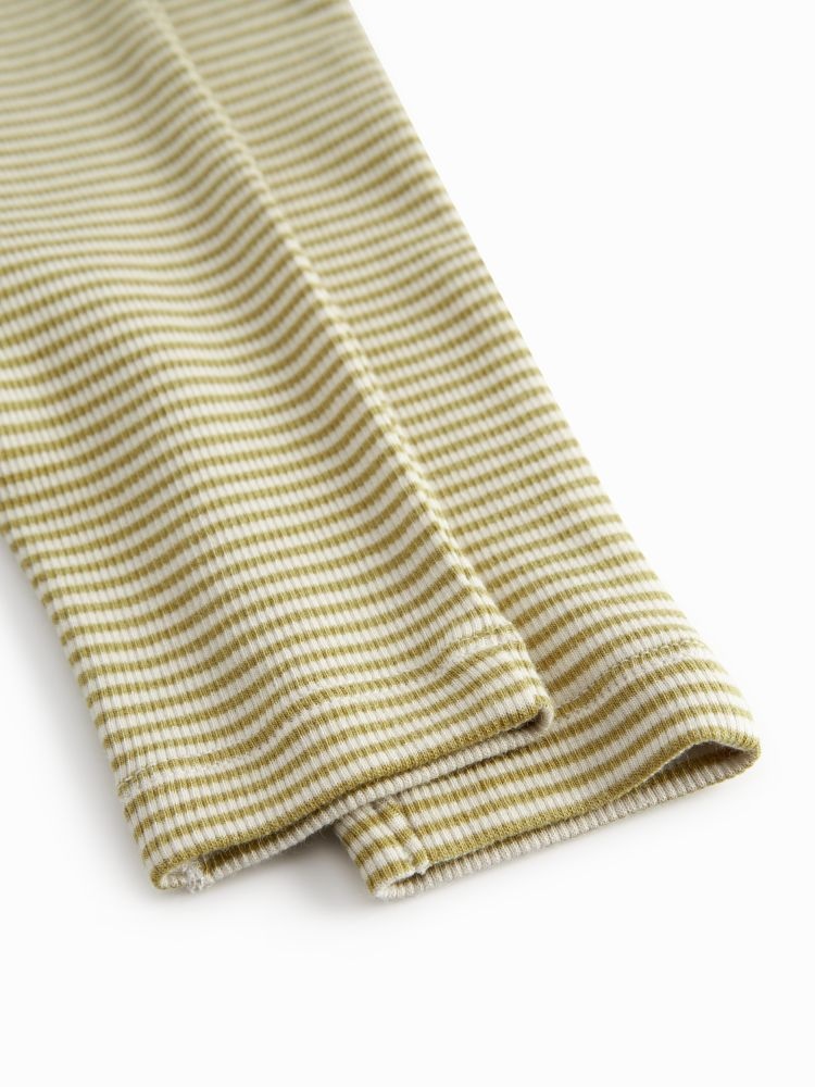 MarMar rib broekje met fijne strepen in zacht olijfgroen en crème. Dit comfortabele babybroekje heeft een elastische taille met omslagboord en een rustige, tijdloze uitstraling. De smalle groene en off-white strepen geven het broekje een speels maar ingetogen karakter, passend bij de herkenbare MarMar-stijl. Mooi te combineren met een bijpassende romper uit dezelfde collectie. Ideaal als dagelijks broekje of als zachte legging voor de allerkleinsten.