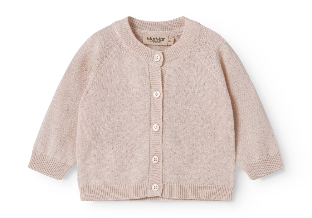 Dit MarMar vest heeft een zachte, verfijnde uitstraling en is uitgevoerd in een lichte roze tint met een subtiel ajourpatroon. Het vestje heeft lange mouwen, een ronde hals en sluit met kleine knoopjes aan de voorkant. De fijne structuur en rustige kleur maken dit vest makkelijk te combineren met het bijpassend broekje of een legging uit de MarMar-collectie. Ideaal als extra laagje, zowel thuis als onderweg. Een tijdloos en praktisch item voor de babygarderobe, passend bij verschillende outfits en kleuren.