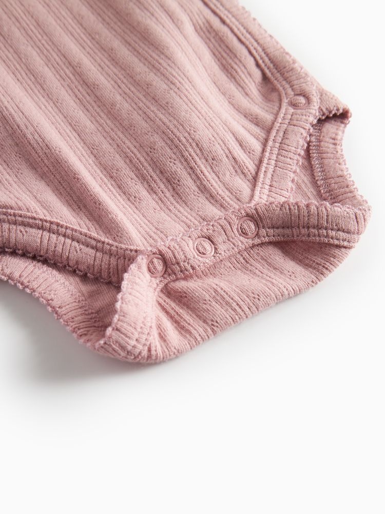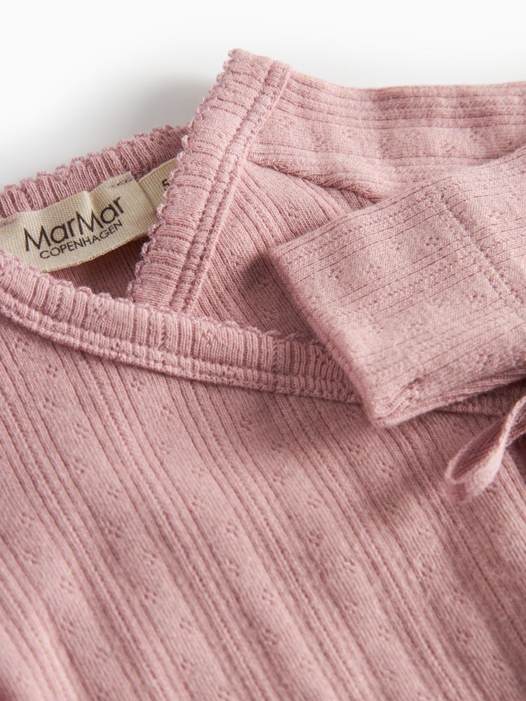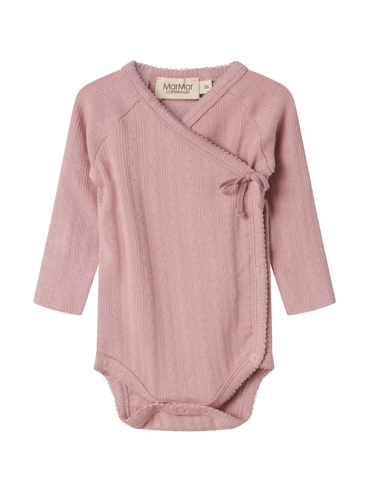 De MarMar Rubetta overslag body in de zachte kleur roze is een comfortabele en stijlvolle keuze voor je kleintje. Deze newborn romper is gemaakt van een fijne ribstof met subtiel patroon. De overslag met striksluiting en drukknoopjes maakt het aankleden en verschonen extra eenvoudig. Dankzij de lange mouwen en de zachte, rekbare kwaliteit blijft het rompertje goed in model en voelt hij prettig aan op de huid.