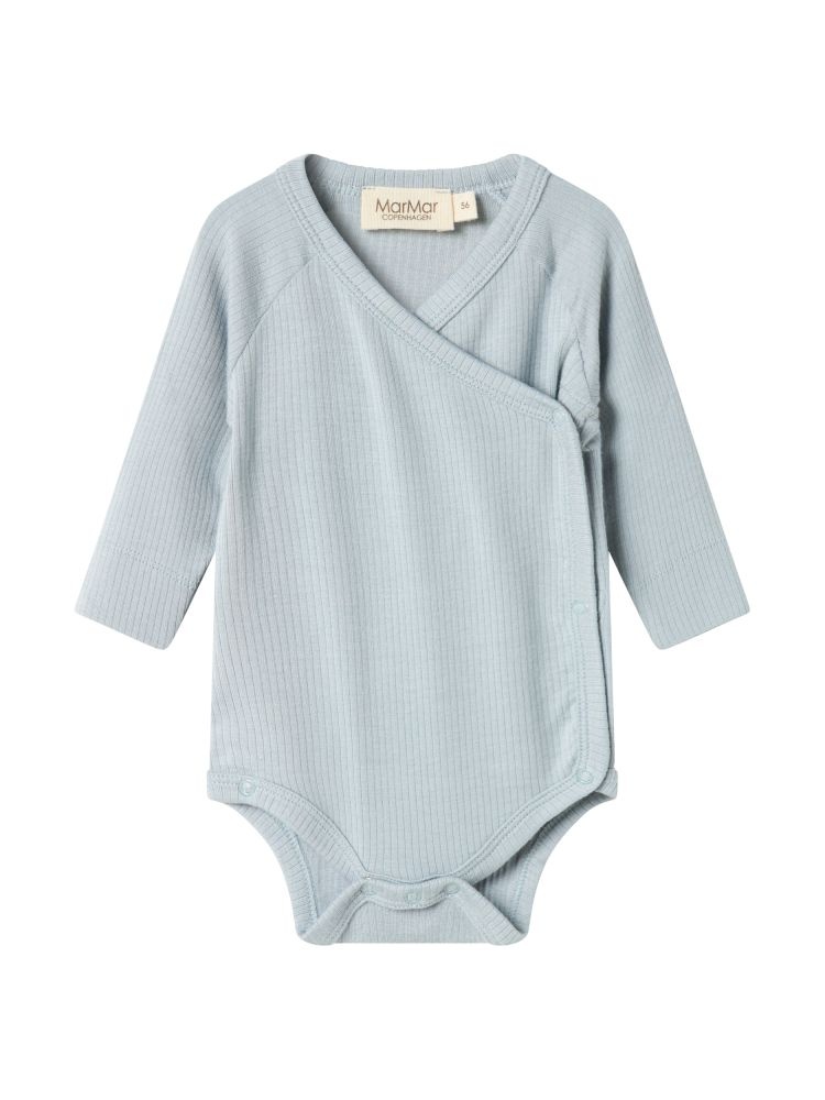 De MarMar overslag body in zacht blauw is een fijne basic voor je baby. Deze romper met lange mouwen is uitgevoerd in een ribstructuur en gemaakt van 95% modal en 5% elastaan. Door de overslag en de drukknoopsluiting is aankleden en verschonen extra gemakkelijk. Het materiaal is soepel, ademend en zacht voor de gevoelige babyhuid, terwijl het elastaan zorgt voor een comfortabele pasvorm die mooi meebeweegt. Deze baby body is ideaal om dagelijks te dragen en te combineren met andere items uit de Mar Mar collectie.