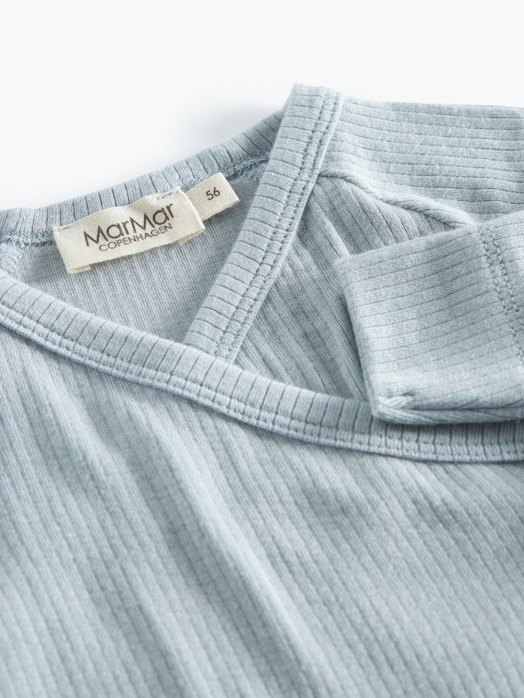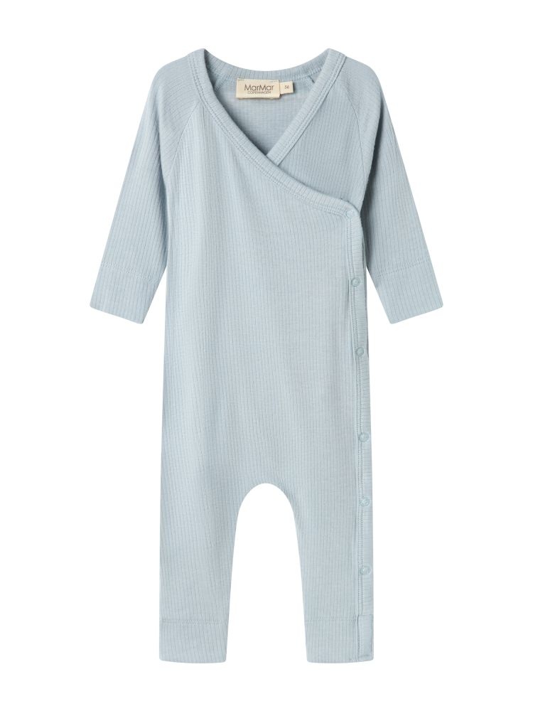 De MarMar Copenhagen overslag jumpsuit in zacht blauw is een comfortabele en stijlvolle keuze voor je baby. Dit boxpakje is gemaakt van een ribgebreide jersey van 95% modal en 5% elastaan, wat zorgt voor een soepel en rekbaar draagcomfort. Dankzij de overslagsluiting met drukknopen is het pakje eenvoudig aan en uit te trekken, ideaal voor dagelijks gebruik. De lange mouwen en nauwsluitende pasvorm bieden warmte en bewegingsvrijheid, terwijl de frisse blauwe kleur een tijdloze uitstraling geeft.