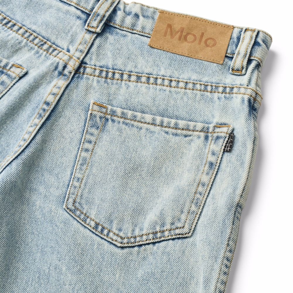 Deze Molo jeans is een tijdloze en comfortabele spijkerbroek met een rechte, iets wijdere pasvorm. De lichte denimwassing geeft de broek een frisse en ontspannen uitstraling, perfect voor elke dag. Gemaakt van stevig denim dat prettig draagt en tegen een stootje kan. De jeans heeft een klassieke knoop- en ritssluiting, riemlussen en handige zakken voor en achter. Makkelijk te combineren met een t-shirt, top of sweater voor een casual maar verzorgde look.